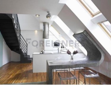 Let us introduce your this beautiful attic apartment, with a terrace and large glass windows, suitable for 1-4 people, 90 Sqm. The living area is combined with the kitchen and dining area, two bedrooms with a closet, laundry room, utility room, two toilets and a bidet. The building has an elevator. The apartment is equipped with an alarm system, air conditioning, TV, DVD, satellite, washing machine and dryer, iron, safe deposit box, fully equipped kitchen including dishes, microwave, refrigerator, and dishwasher.