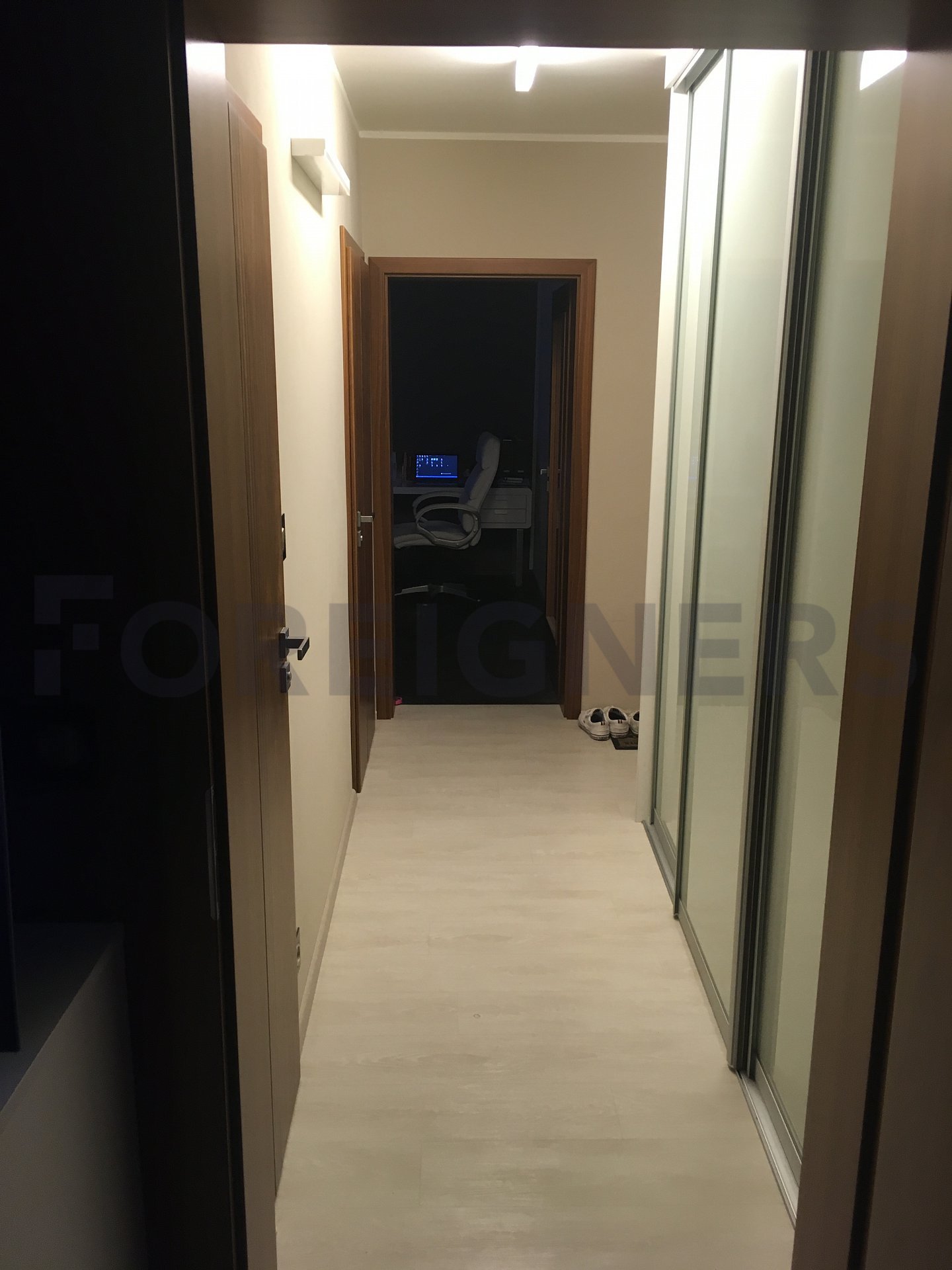 There are a fully equipped kitchen and dining area; bedroom and hallway with built-in wardrobes, shower bathroom and separate toilet, living room with sofa and writing table, separate bedroom with a double bed, cabinets and TV.