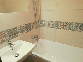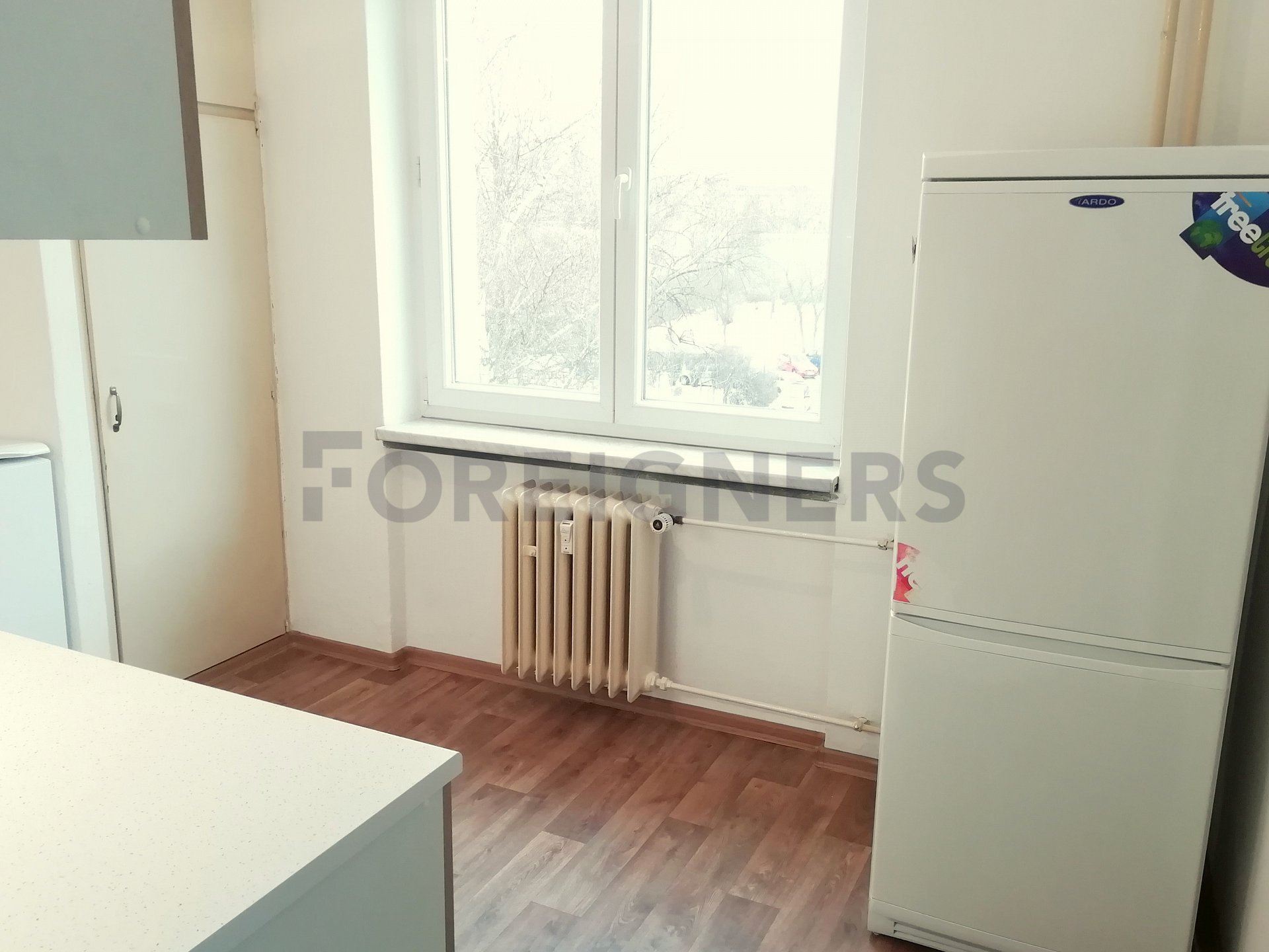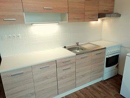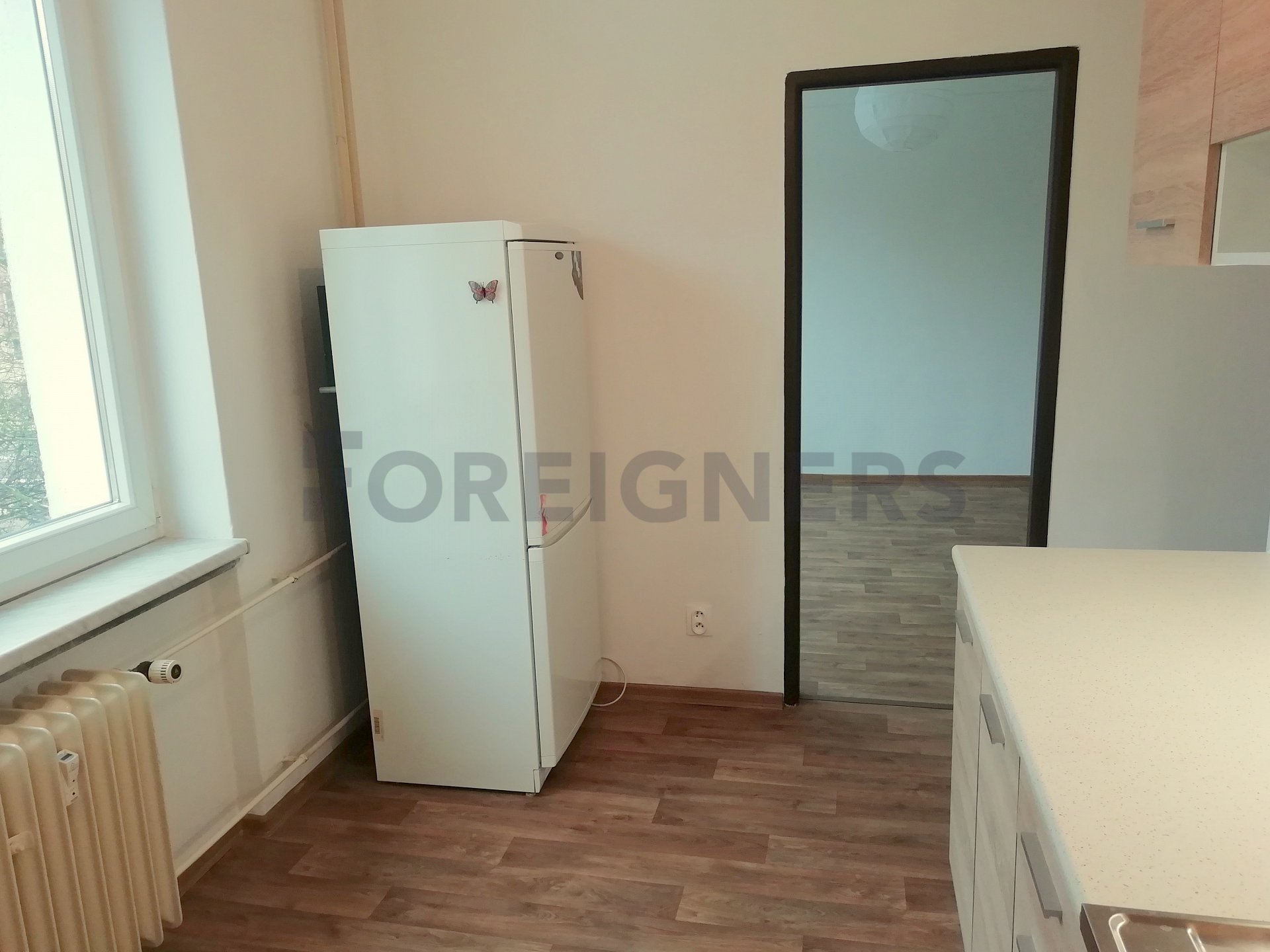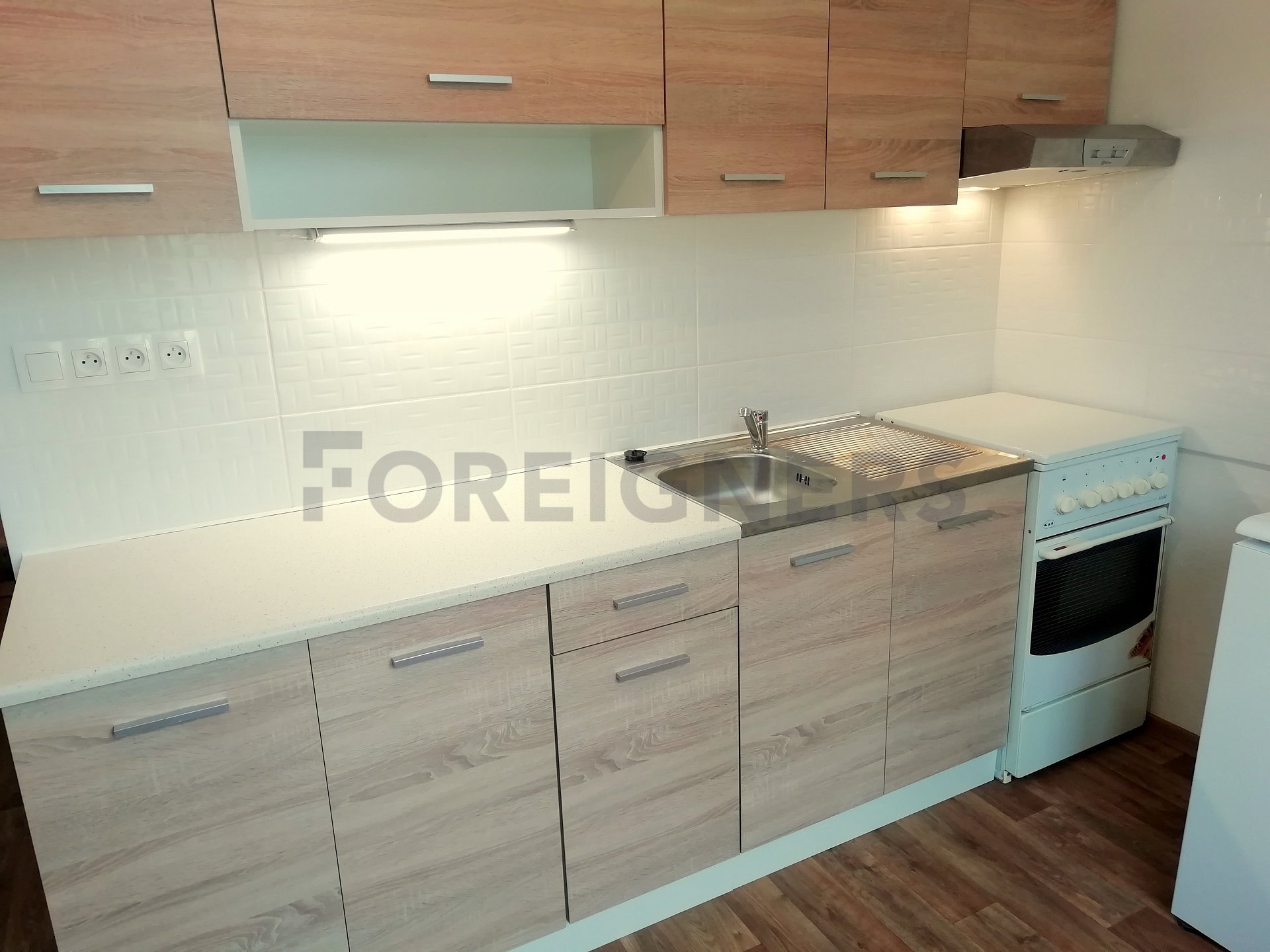 Kitchen corner with appliances (oven, cooker, fridge with freezer, washing machine) The apartment is after a recent reconstruction - brand new bathroom with a bathtub, separate toilet, a new kitchen unit. Possible to keep a sofa.