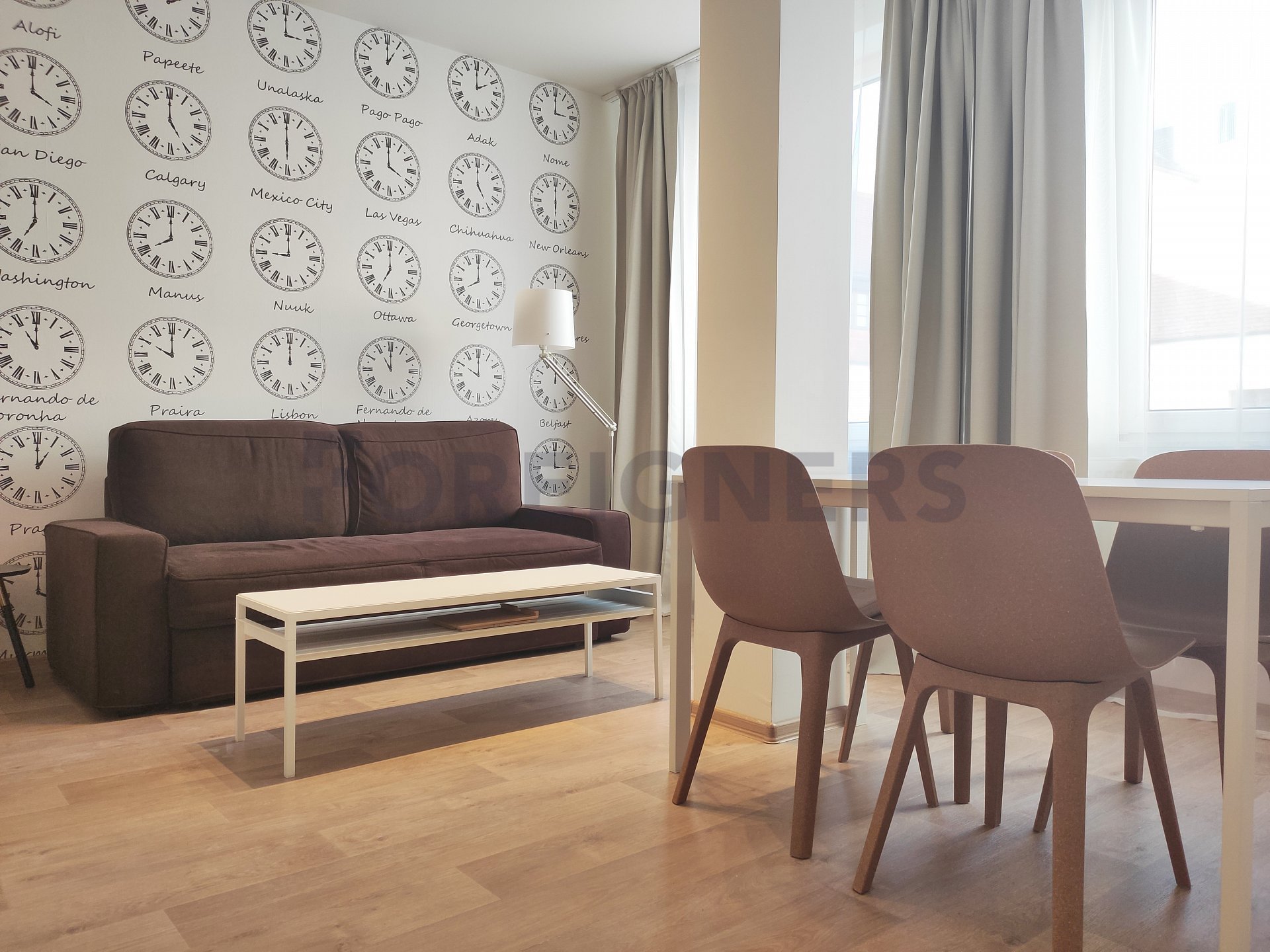 45 square meters spacious apartment with windows to a calm yard. Through the open windows, a tenant can hear water sound from a pond in the county yard or sounds of music from Caffe Lavazza. Small 5 square meters room for your season stuff or possible to use as a utility room.
