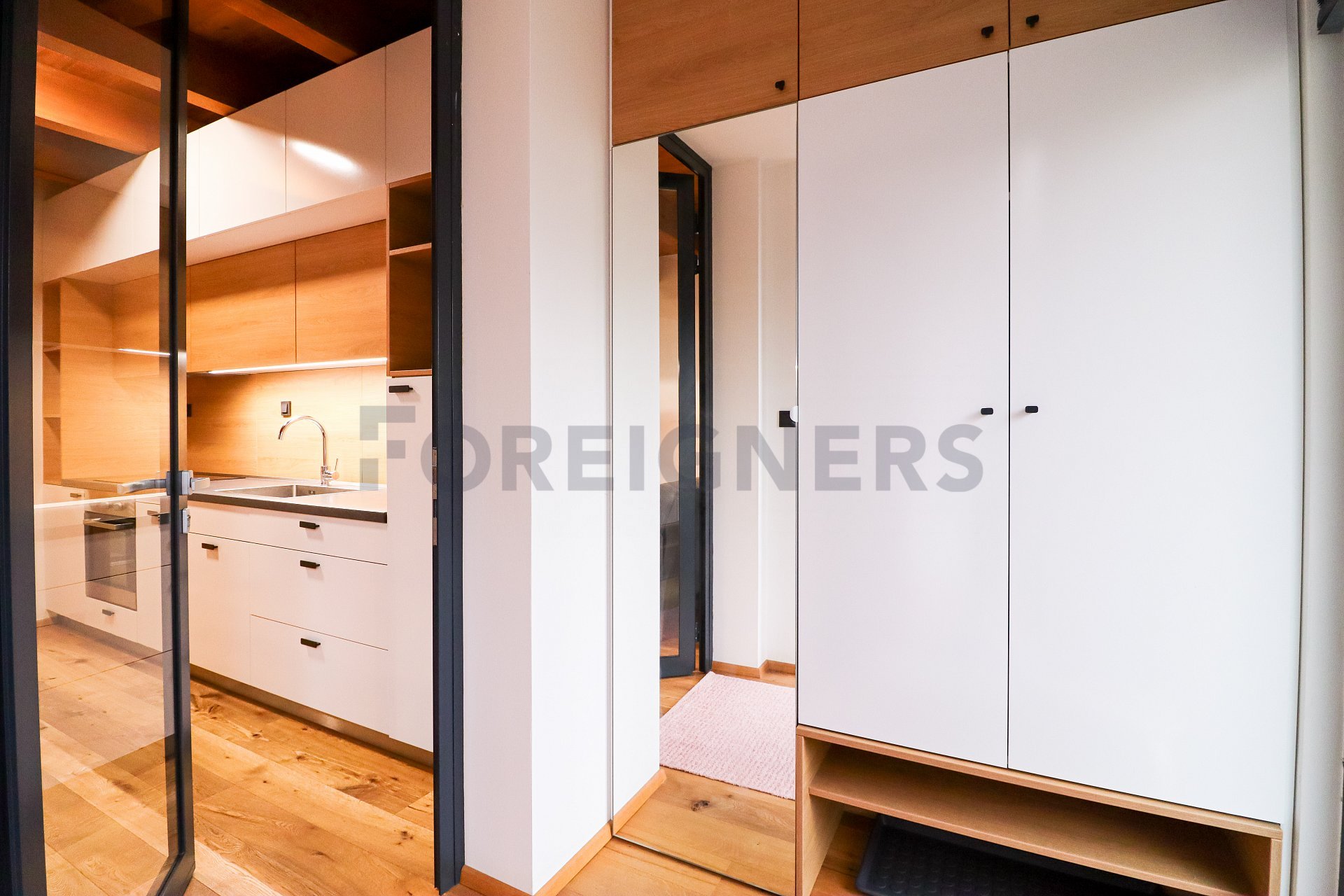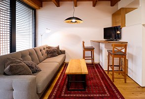 We offer for rent a modern, fully furnished studio apartment (1+kk) with a total area of 35 m², including a private terrace (7 m²) and access to a shared inner courtyard garden, located on Kamenná Street, just a few steps from the new Svratka river promenade.