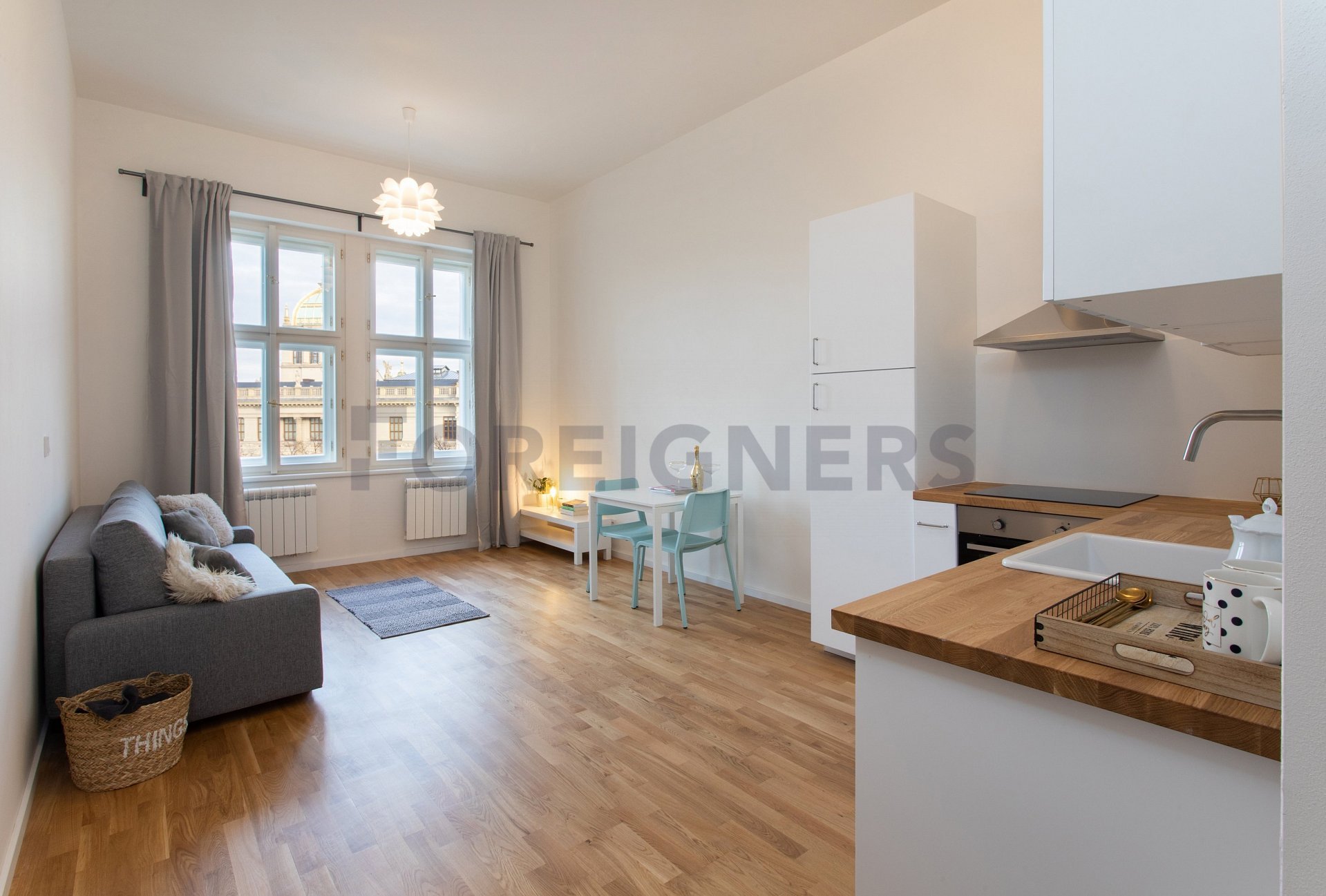 A newly reconstructed apatrment in the center of Prague in a historical building near National museum and Wenceslas square.