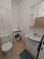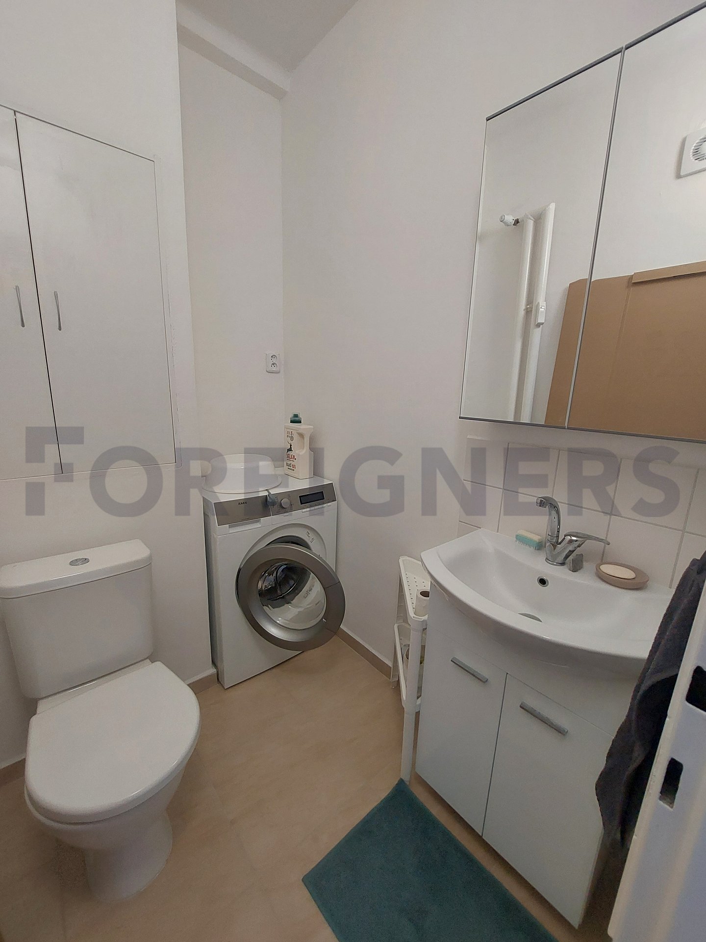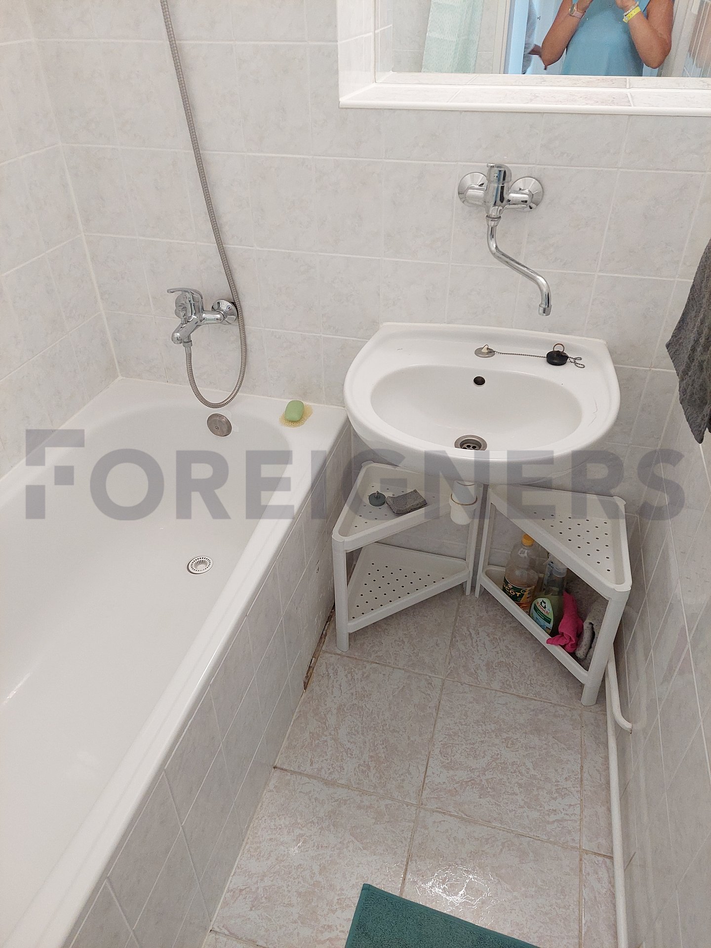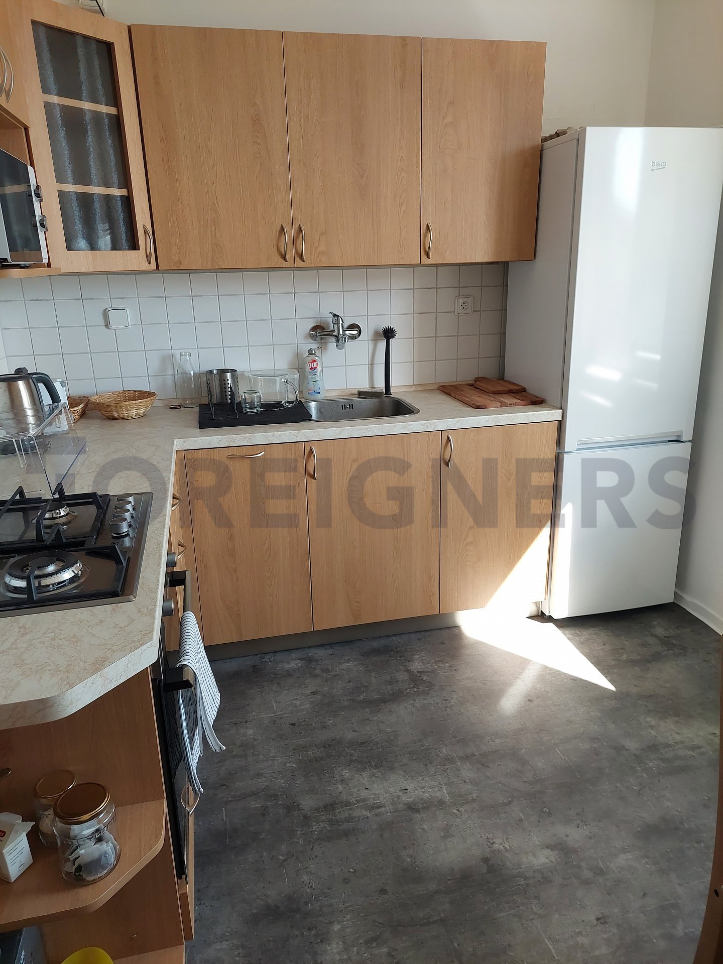 The Apartment consists of entrance hall with built in wardrobe. Bathroom with a bathtub, sink and a mirror. Separate toilet with washing machine, sink and mirror. Kitchen with a kitchen unit with a gas stove, an electric oven, a fridge with a freezer, a digester, a kettle, a toaster, sink, and dining table with 4 chairs.