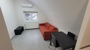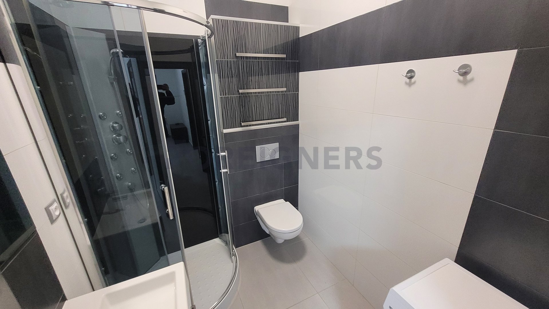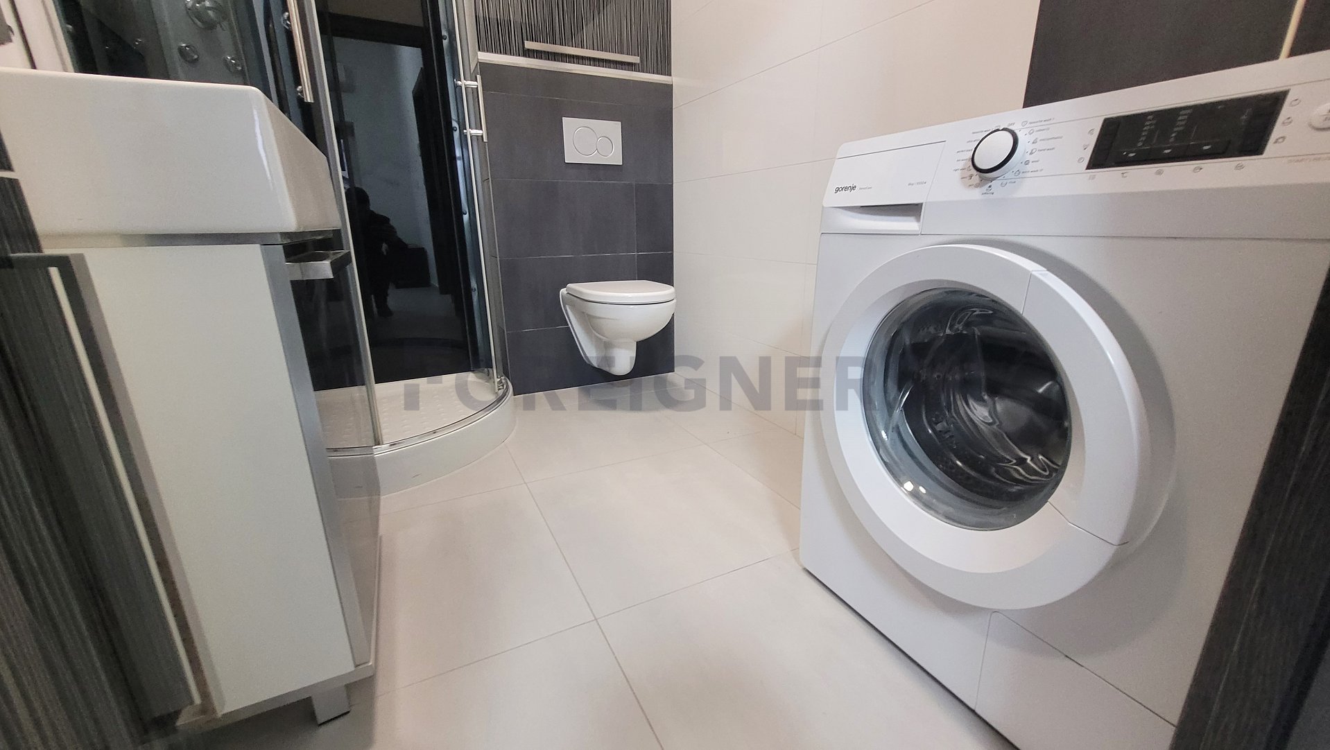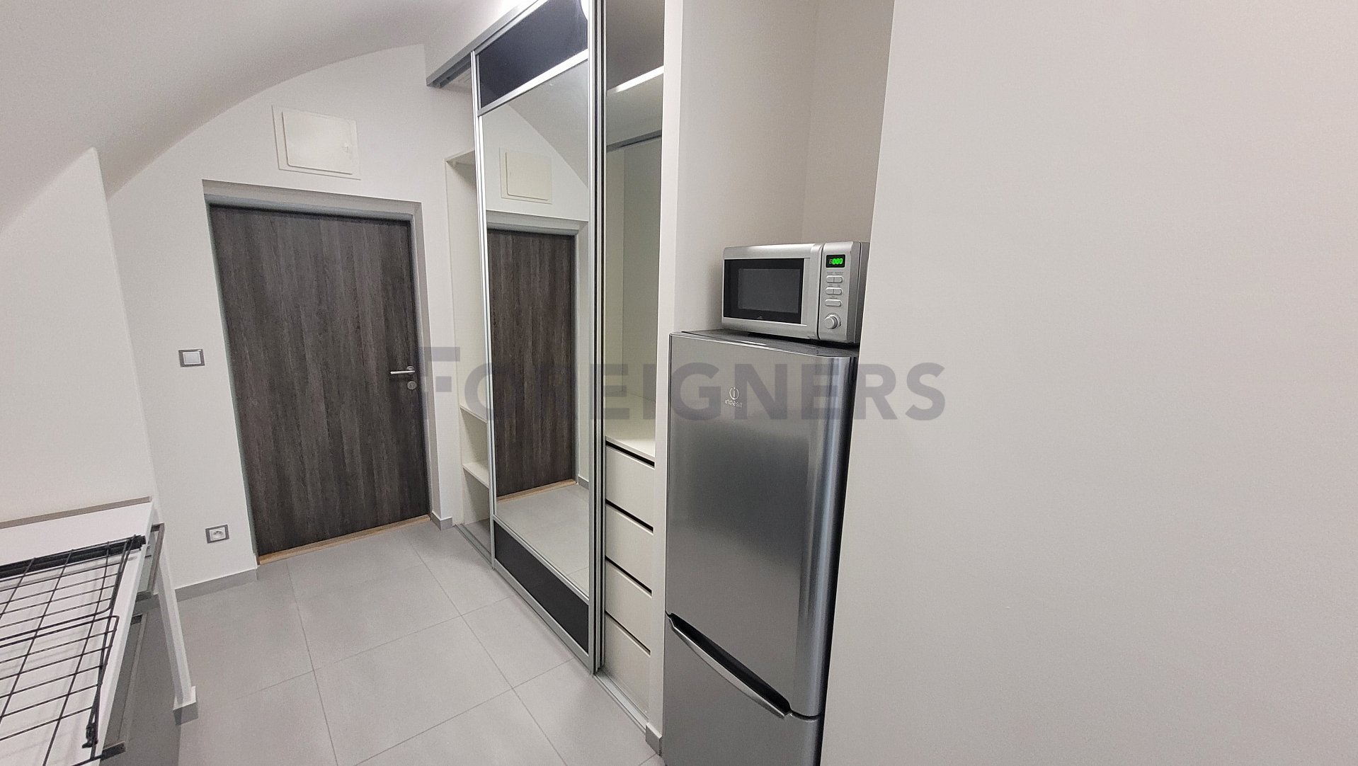 The flat is offered partly furnished where is the kitchen unit (stove, oven, fridge with freezer and microwave), built-in wardrobe, the bathroom is equipped with a shower corner, sink, toilet and washing machine. The apartment has A/C! The landlord is willing to furnish it after the agreement.