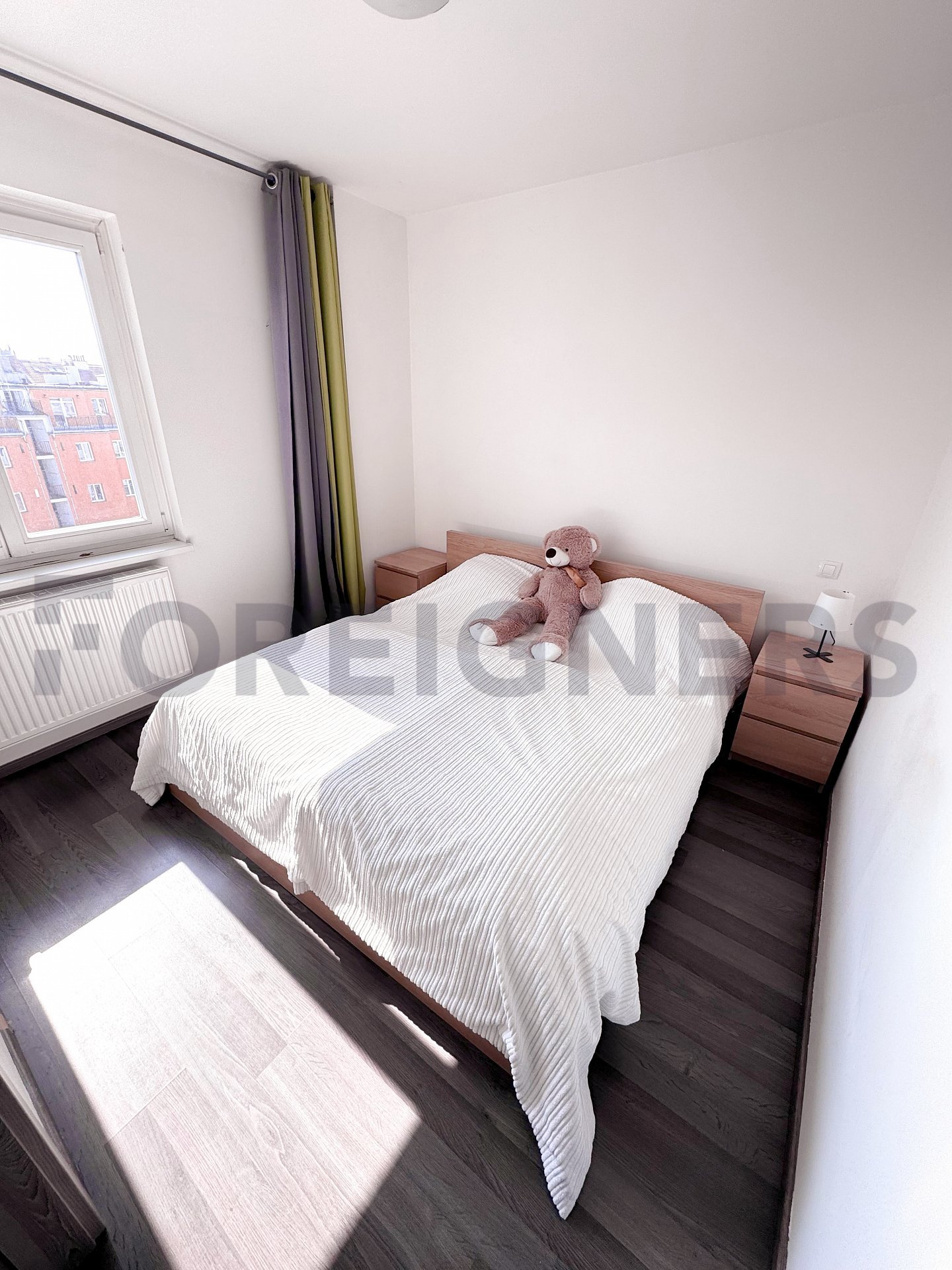 We are pleased to offer a bright 1-bedroom apartment with a south-facing terrace overlooking a quiet courtyard, available for long-term rent. Situated on the 5th floor of a well-maintained residential building with an elevator, this modern apartment is part of an elegant extension above the 4th floor.