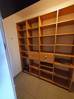 • a kitchen unit with appliances (stove, oven, extractor hood, microwave, fridge, dishwasher)