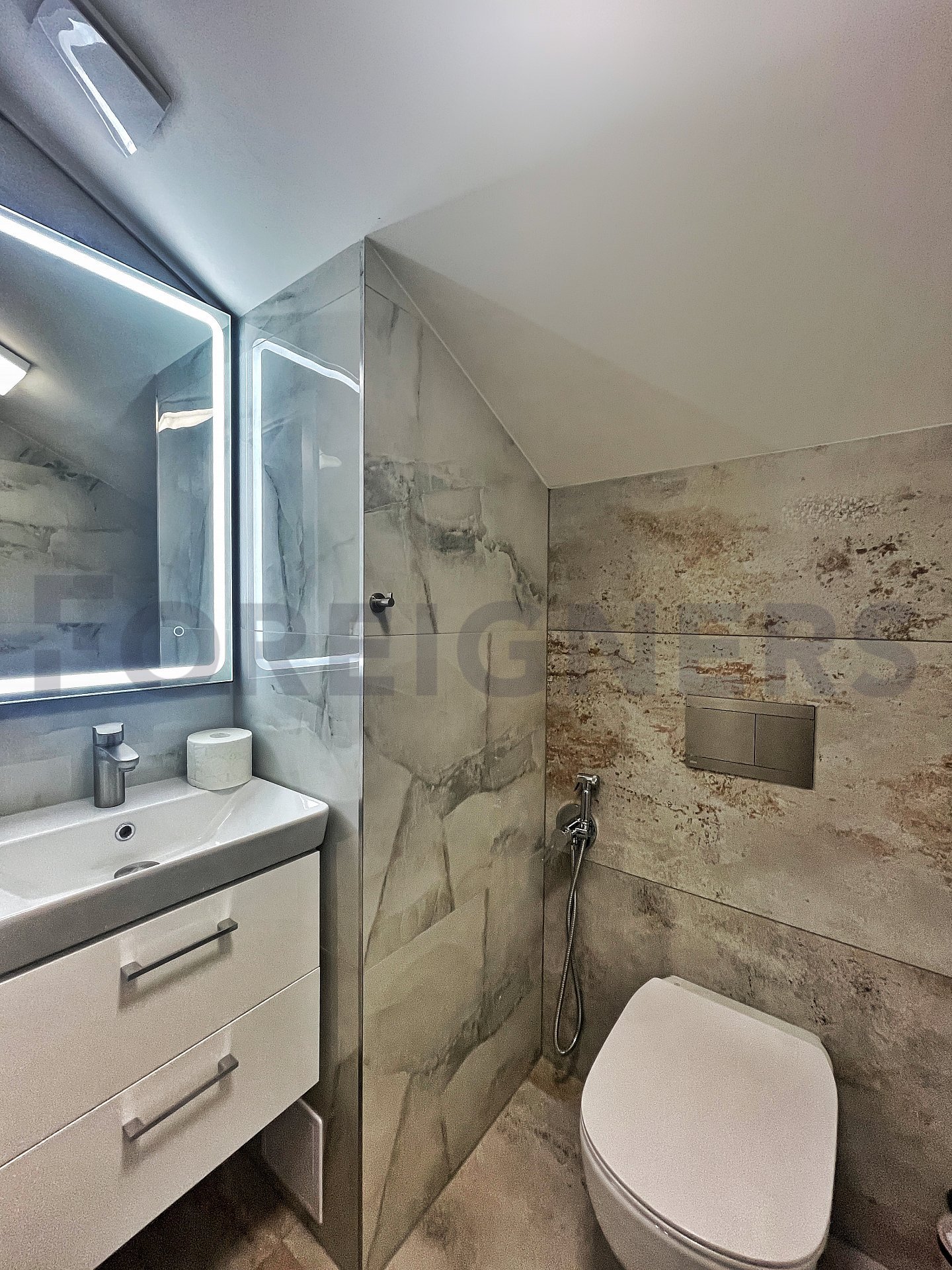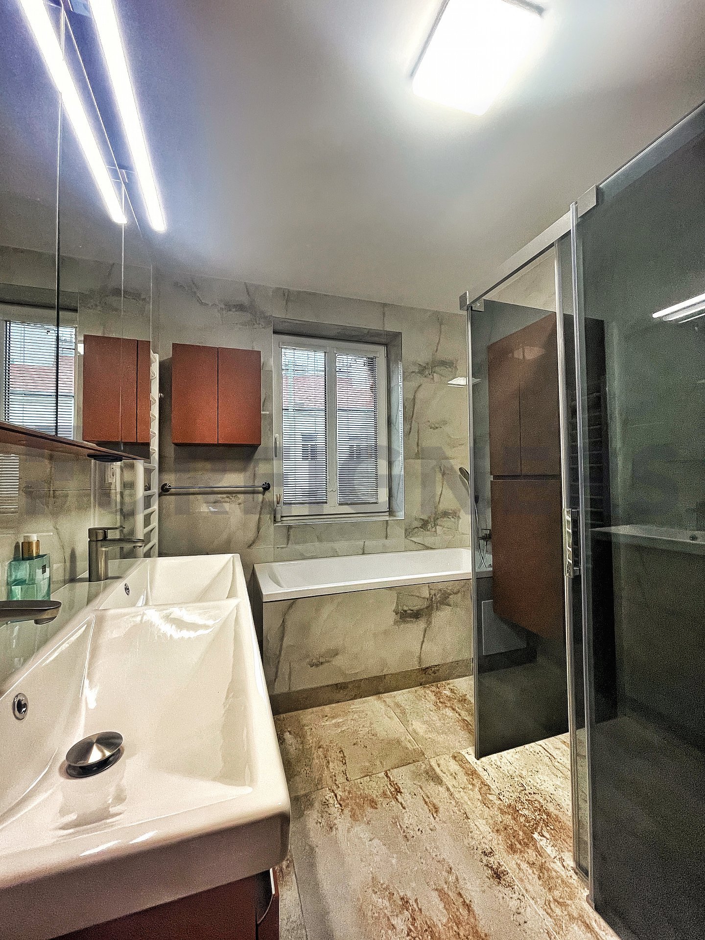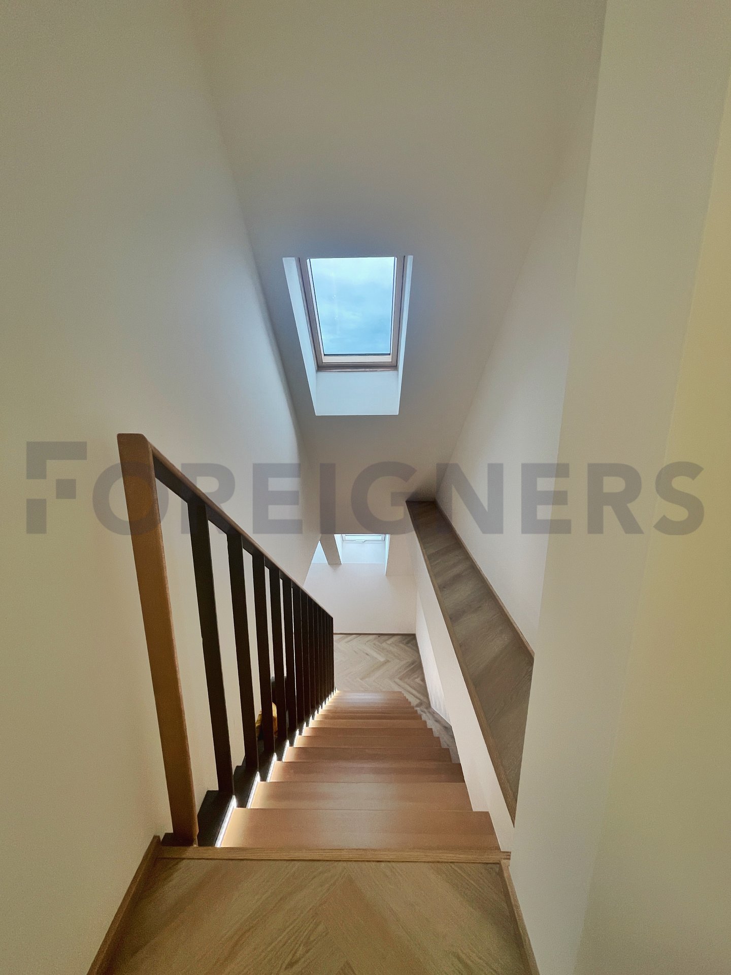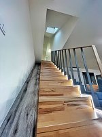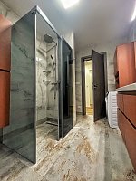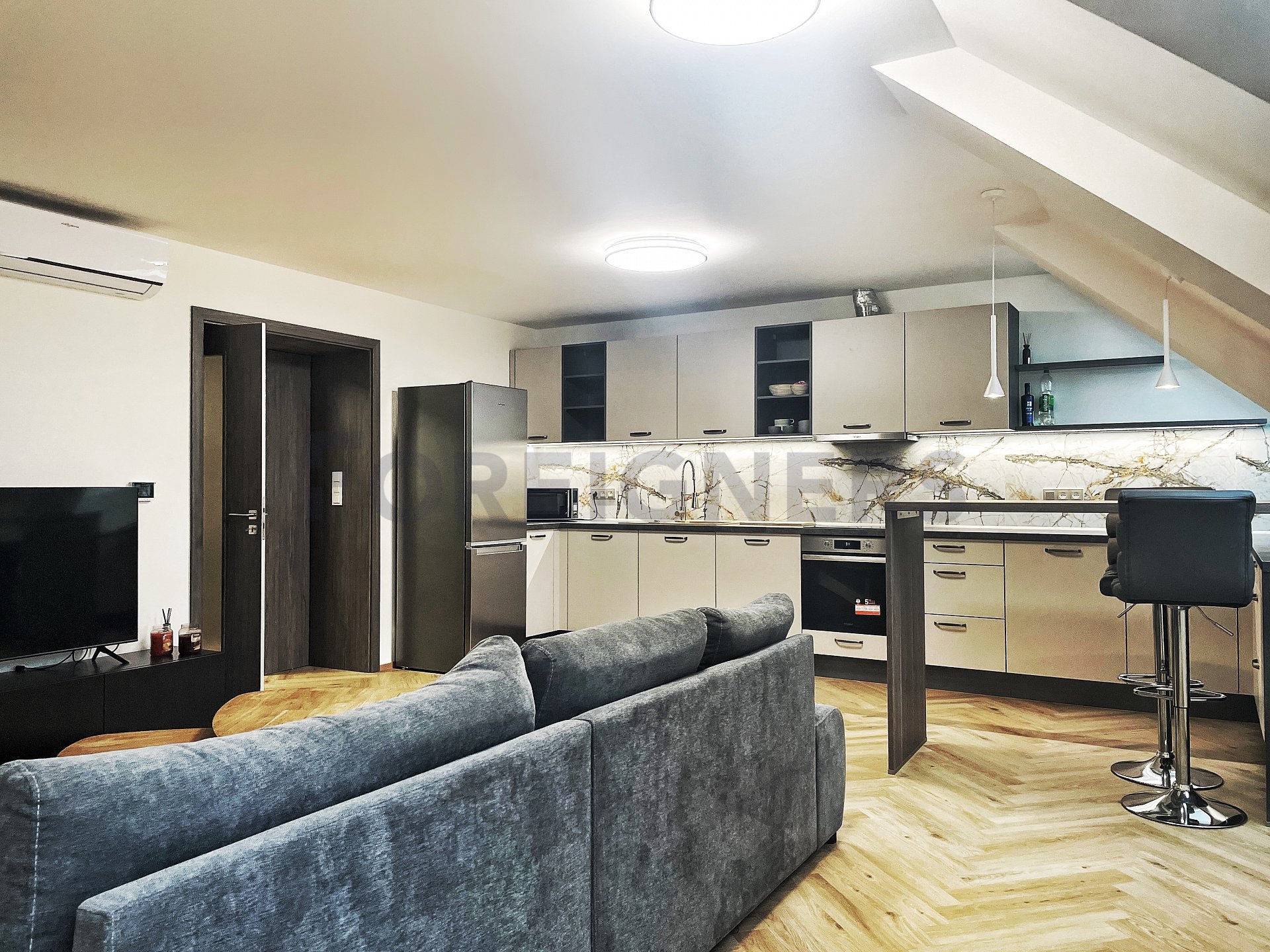 In the apartment, the latest technologies have been used to ensure maximum comfort for tenants - underfloor heating in all rooms, air conditioning in each bedroom and the living room, large-format tiles for the bathroom walls and floors, as well as toilet and bidet showers. Throughout the apartment, there are seamless doors with magnetic locks, electric curtains in the bedroom, horizontal blinds, and shading for the skylights.