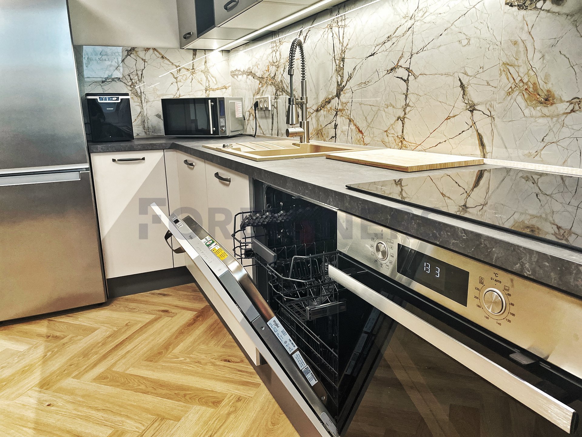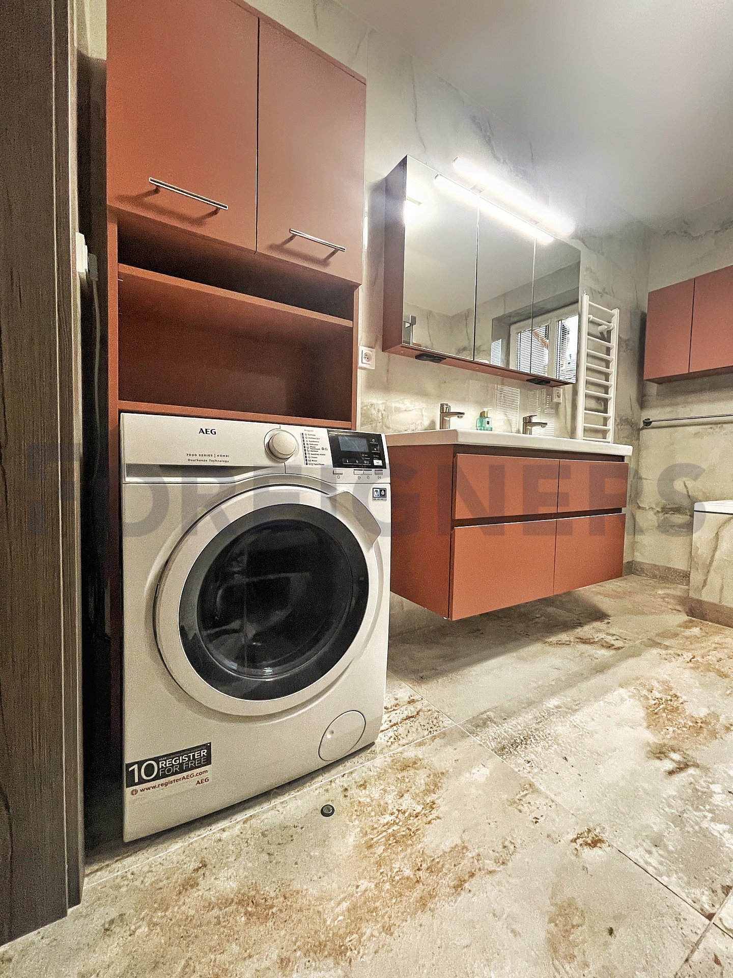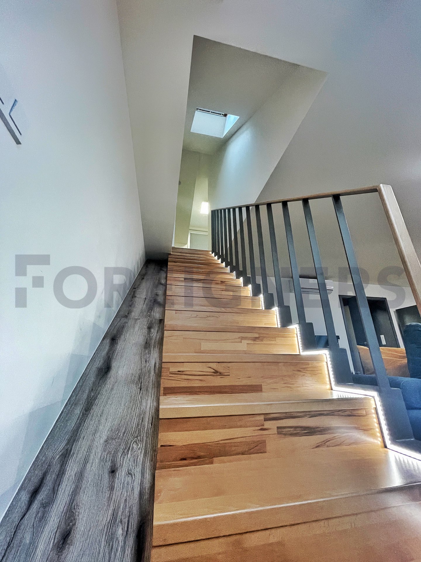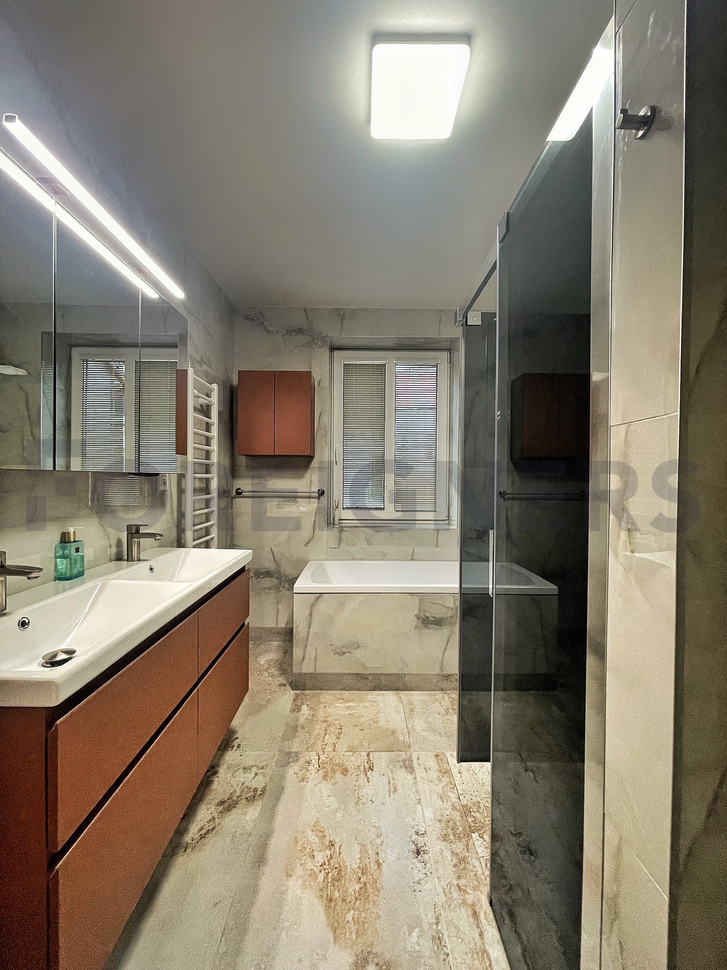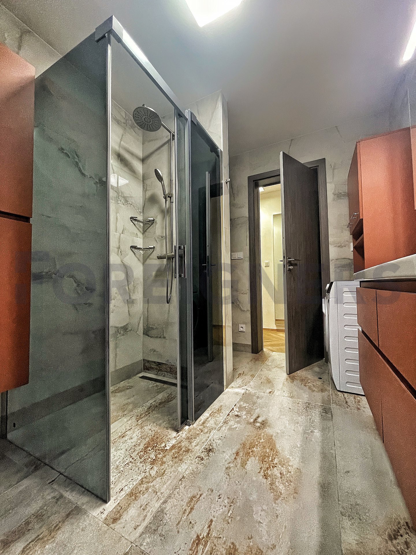 In the apartment, the latest technologies have been used to ensure maximum comfort for tenants - underfloor heating in all rooms, air conditioning in each bedroom and the living room, large-format tiles for the bathroom walls and floors, as well as toilet and bidet showers. Throughout the apartment, there are seamless doors with magnetic locks, electric curtains in the bedroom, horizontal blinds, and shading for the skylights.