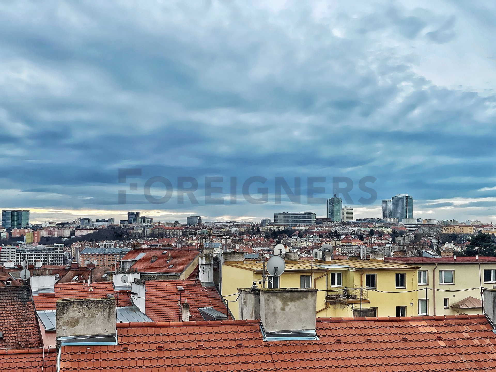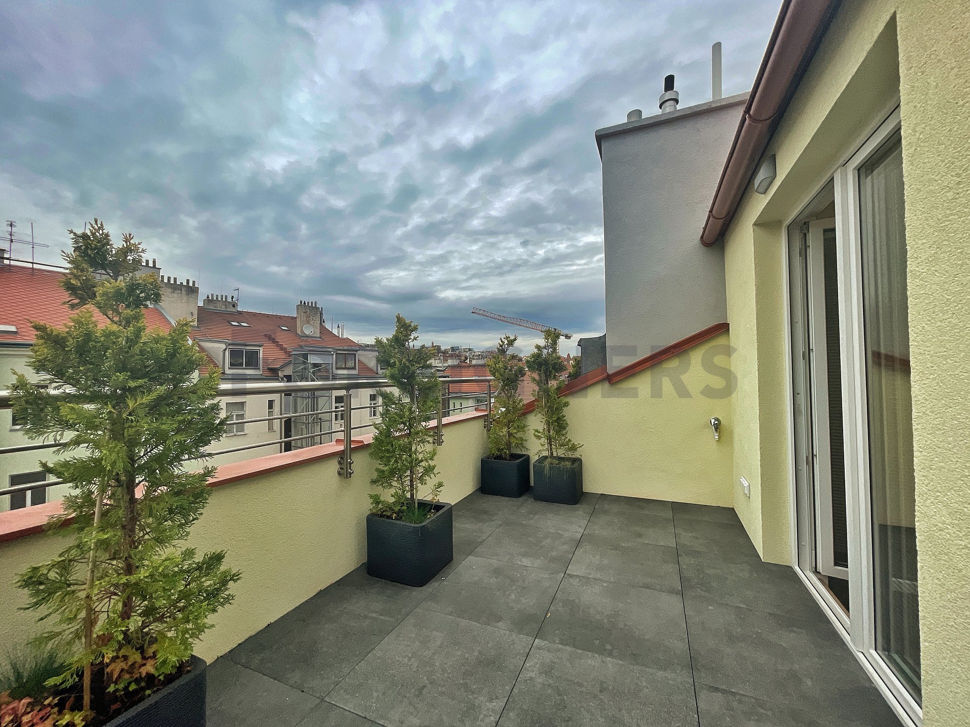 This is a two-story, exceptionally equipped apartment (105m2) with a terrace (10m2), parking space, and a beautiful view of Prague on the top floor of an apartment building in an attractive residential area.