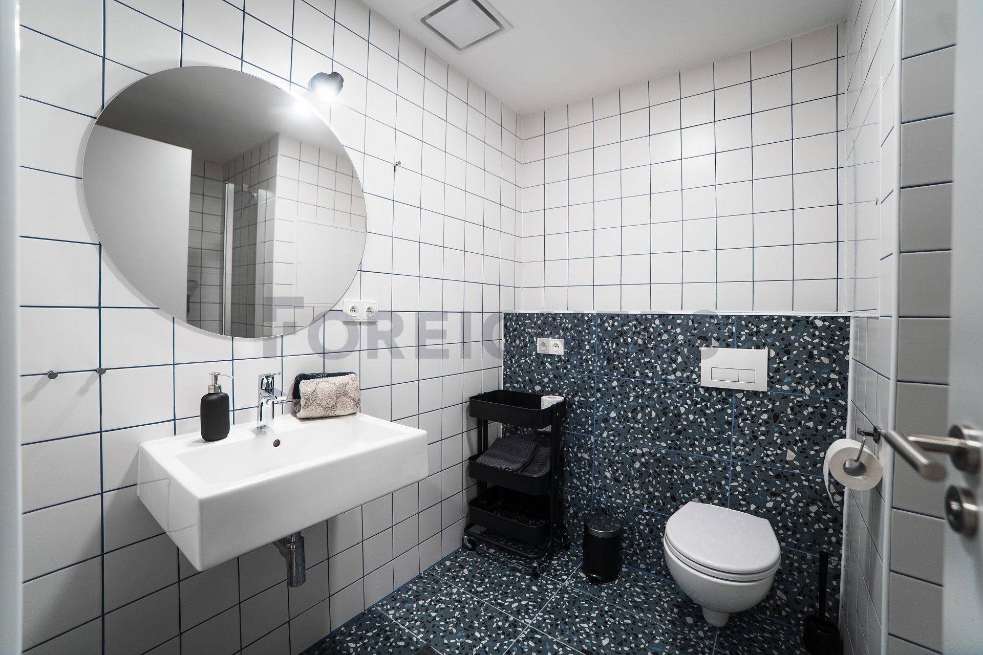 The apartment is located on the 2nd floor in a new building with a total area of 29,7 m2 including a balcony. Vinyl floors with underfloor heating are laid in the rooms and ceramic tiles in the bathroom.