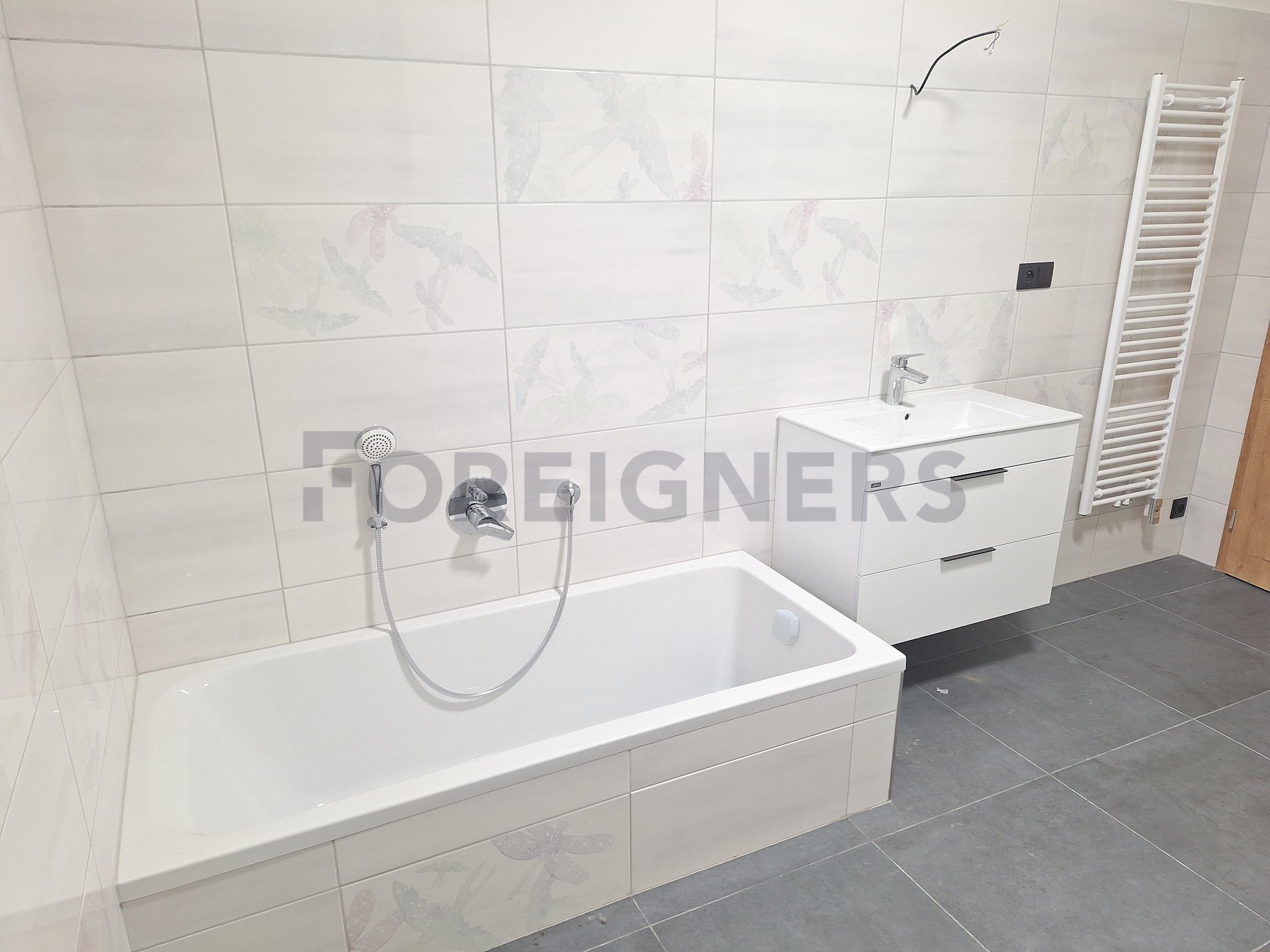 Come and see this new and partly equipped 3+kk apartment, which is located outisde of the city center, in calm area, in a brand new building.