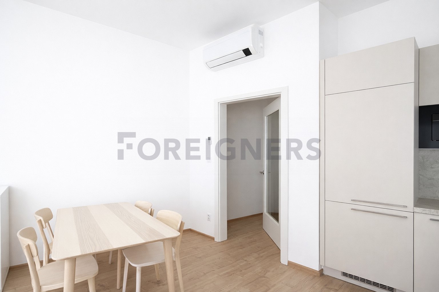 We exclusively offer for rent a beautiful, fully furnished apartment 1+kk, 38 m², located in a newly built development project close to the city center. The apartment is designed to make the most of every centimeter of space while providing comfortable and modern living.