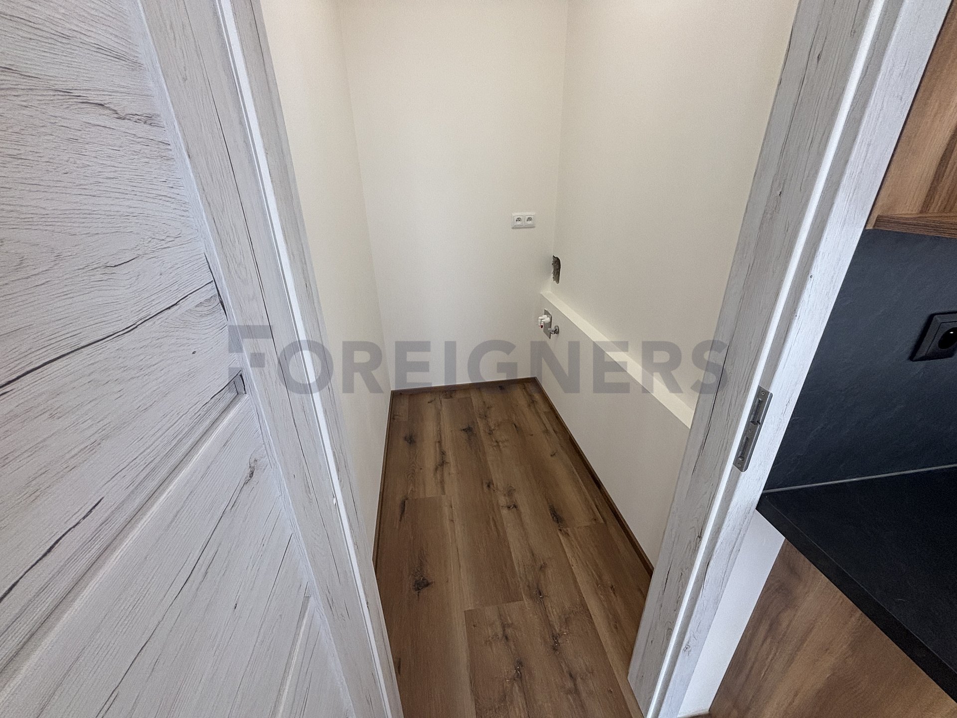The apartment is situated on the 3rd floor of a building that has come under a complete reconstruction including common spaces. It consists of a spacious separate bedroom, a main living area with a modern kitchenette, storage space for ready for a washing machine, a bathroom with a shower corner, wash basin, and toilet, and an entrance hall.
