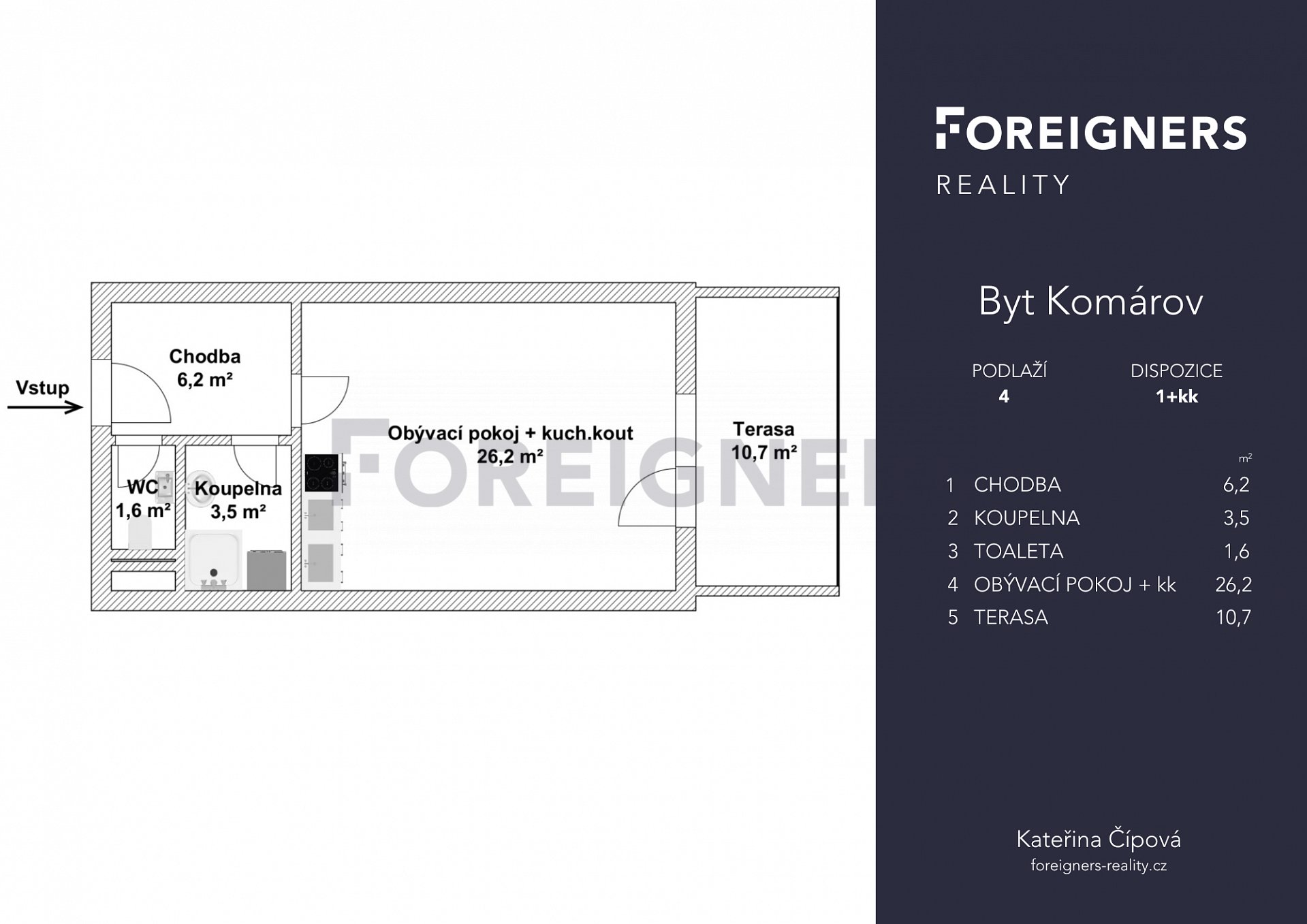 Then this beautiful 1-bedroom apartment (39.2 m²) with a 10.7 m² terrace, located on the 4th floor of building A3 in the Allrisk Meridiem project – the one closest to Brno city center – will definitely catch your attention.