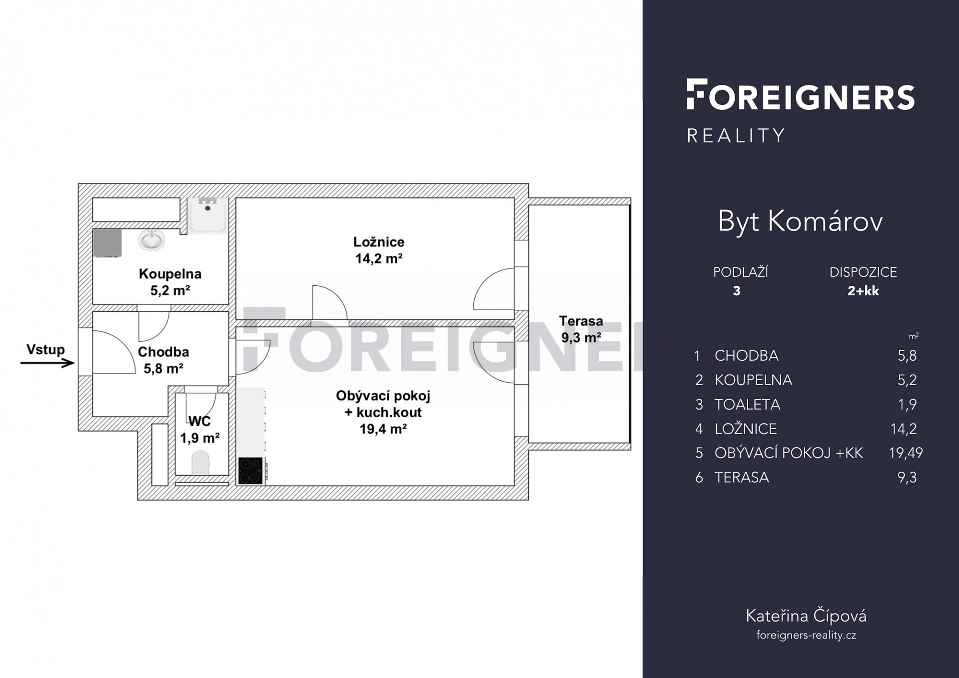 Apartment for Rent – 2+kk with Terrace, Brno – Komárov, Komárovská Street, Meridiem