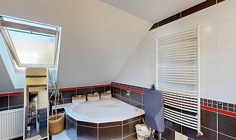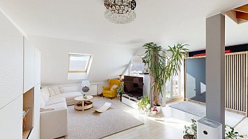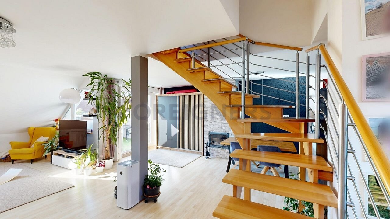 We are pleased to offer for sale a luxurious duplex apartment with a layout of 3+kk, which can easily be converted into 4+kk without compromising comfort or the generous interior space. The apartment was built in 2013 and designed for private living, not as part of a mass developer project. This means exceptional attention to detail and the use of high-quality materials throughout.