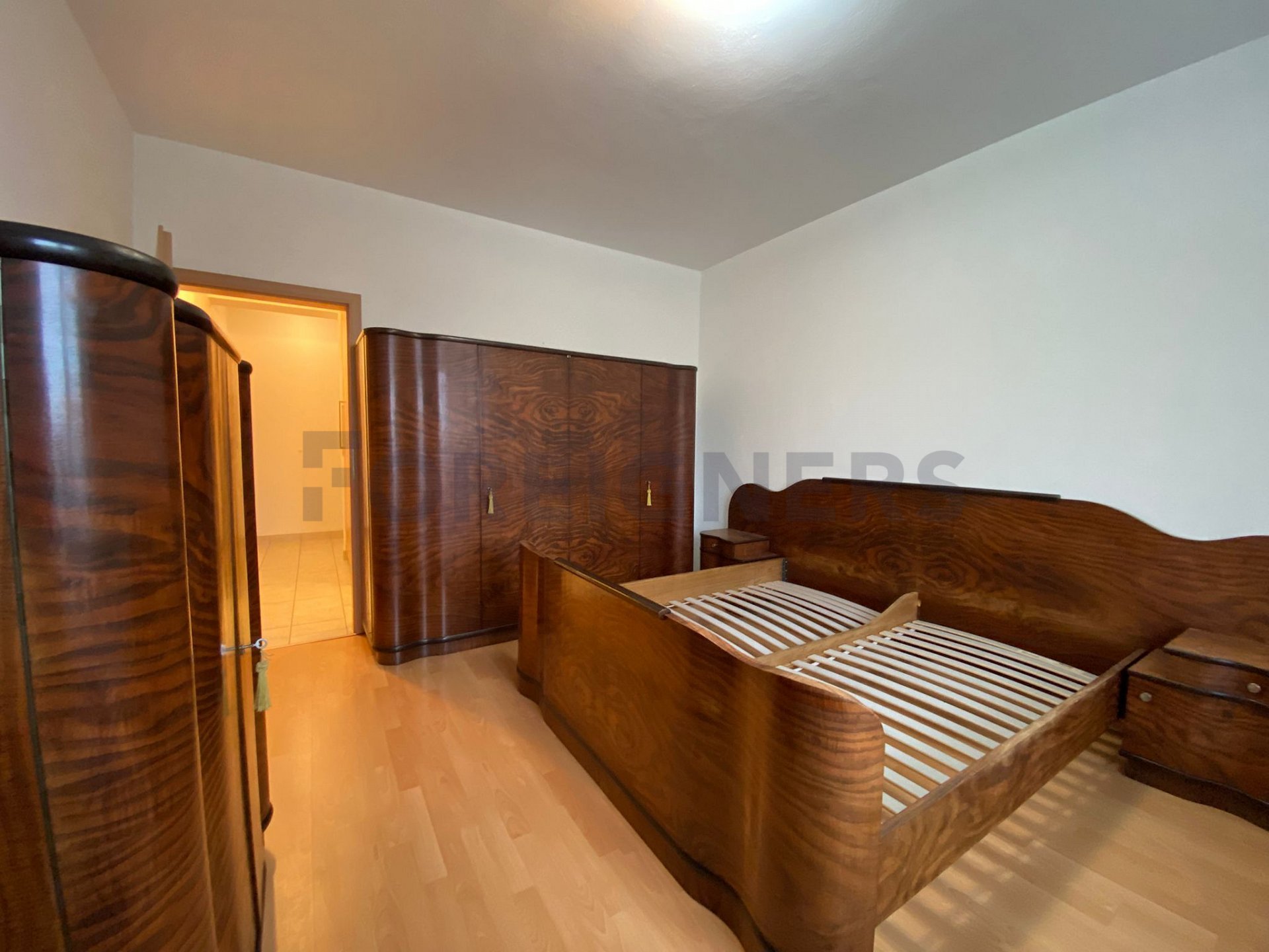 The bedroom features a beautiful historic bed and wardrobe, with enough space for a desk or additional furniture according to your needs.