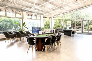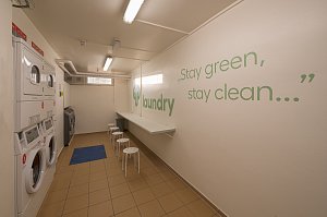 Gym, lounge spaces, study rooms, game room, music and cinema room, terrace, garden, barbecue area, shared kitchen, laundry room (extra fee).