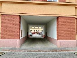 A reserved parking space is available for rent on a fenced and camera-monitored lot directly in front of the building, with a remotely operated gate, for a fee of CZK 2,000 per month.