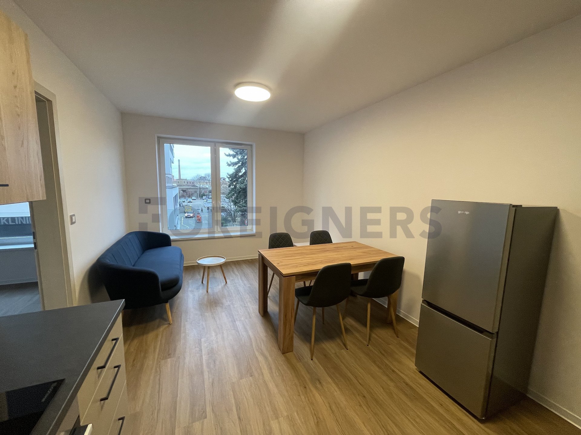 Apartment is located in the brand new apartment complex - Rezidence Vektor - in Rokycanova street in the . There are shops, cafés, bakeries , gym and polyclinic just accross the streets. Tnd floor.To the city center you can easily get by public transportation and as well by walk in about 8 minutes.