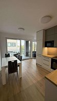 This apartment is situated in the newly finished apartment building - Residence Vektor - just few minutes away by walk from the city center and 5 minutes away from public transporation bus stop - S.K.Neumanna and Jana Palacha. In the surrounding you can find polyclinic, grocery store, gym, and bakery with café.