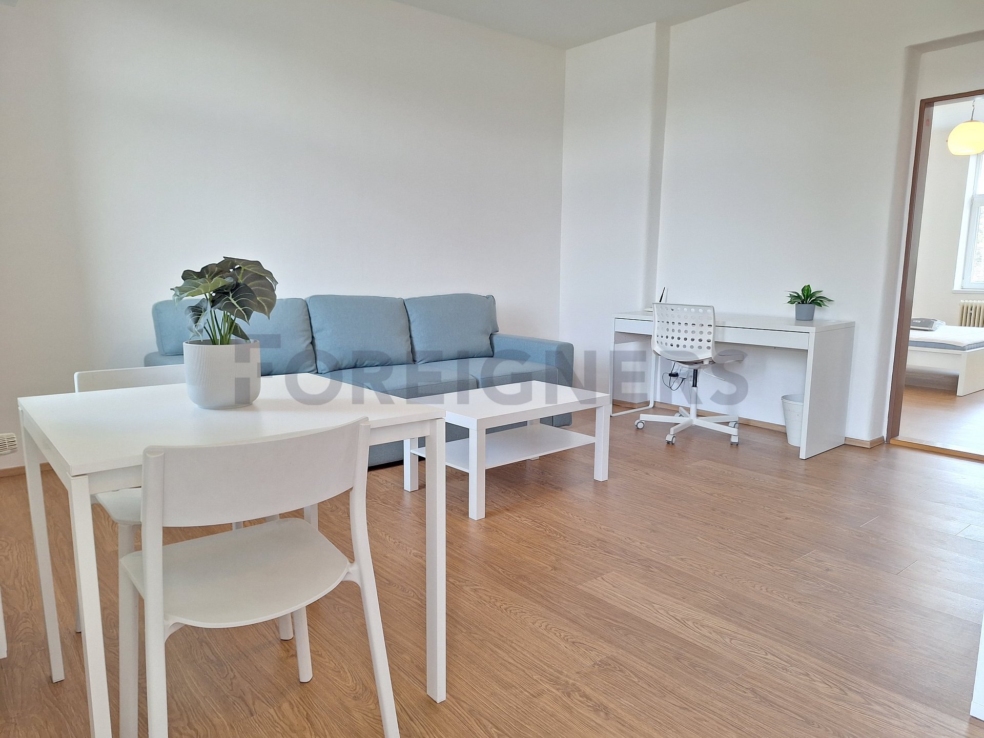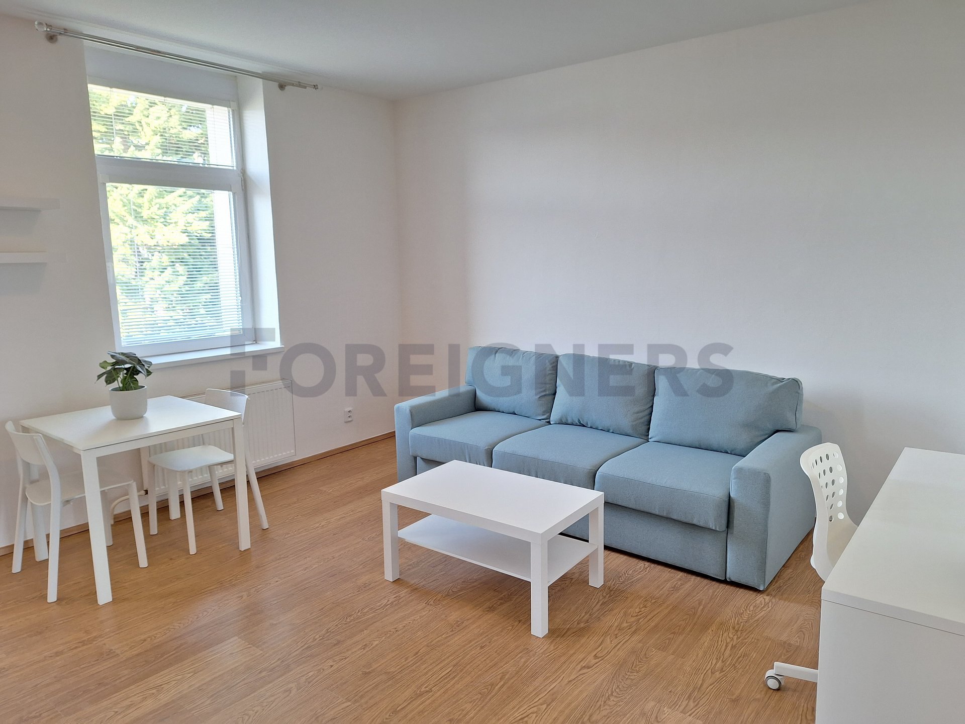 The apartment is available 2+kk with a total area of ​​ 55 m2. The apartment consists of bedroom, living room with kitchen and a bathroom. There is a small balcony.