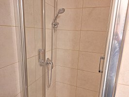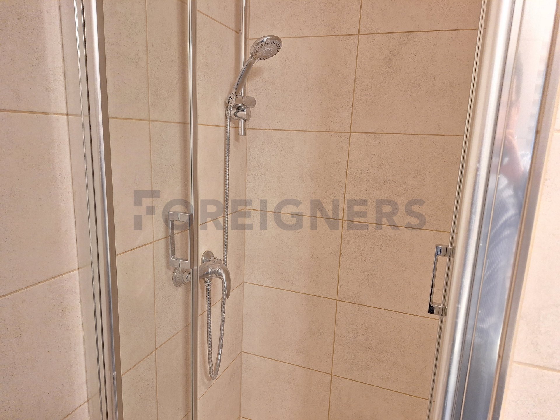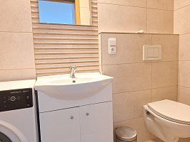 • in the bathroom you will find a shower, a washing machine, a sink with a storage cabinet including a mirror and a toilet