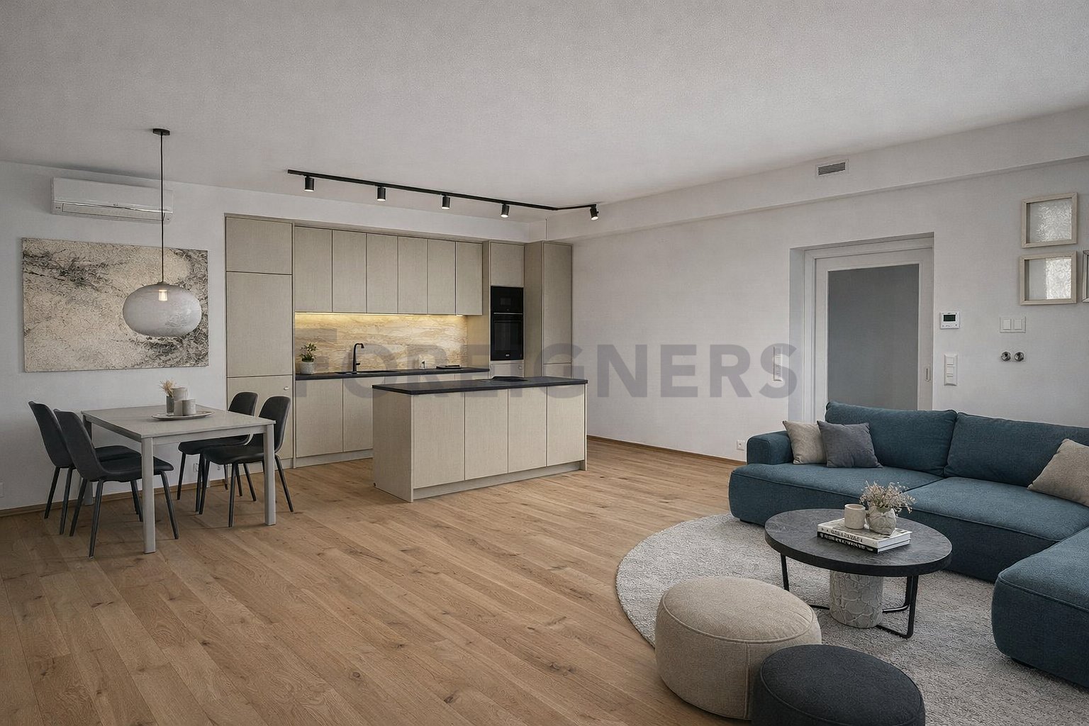 The apartment is currently being completed. Visualizations serve as an illustration of the final interior concept.