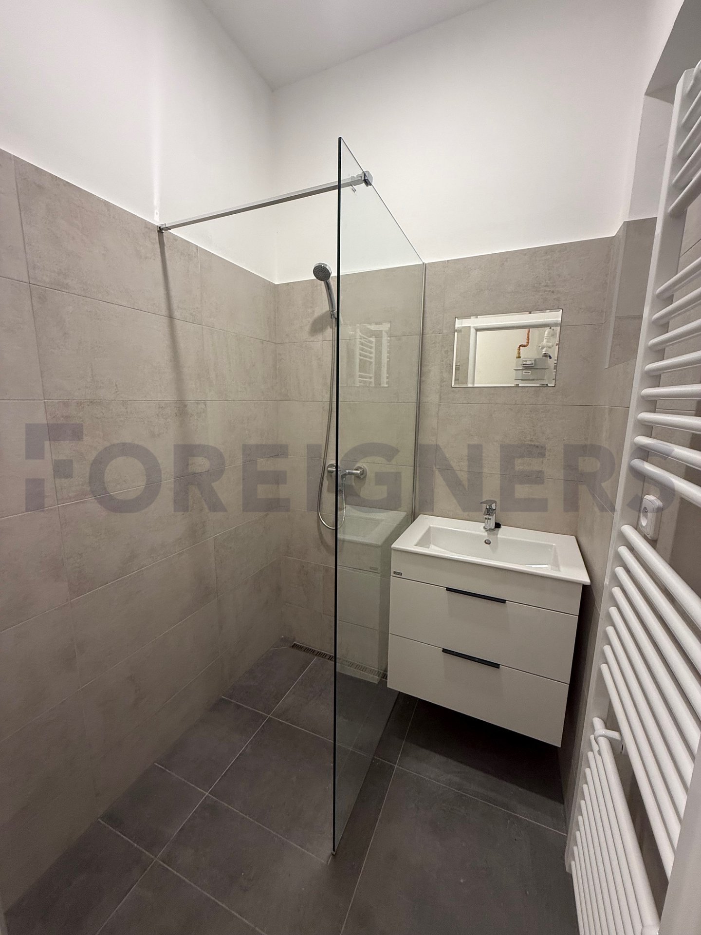 The interior feels bright, clean, and welcoming. There is an entrance hall, separate toilet, modern walk-in shower in the bathroom, storage room with the place for the washing machine.