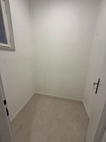 The main living area features beautiful wooden parquet flooring, practical built-in storage, and enough space for comfortable living for a single tenant or a couple. The kitchen corner is separate and fitted with a modern kitchen unit and appliances, offering both functionality and a pleasant design.