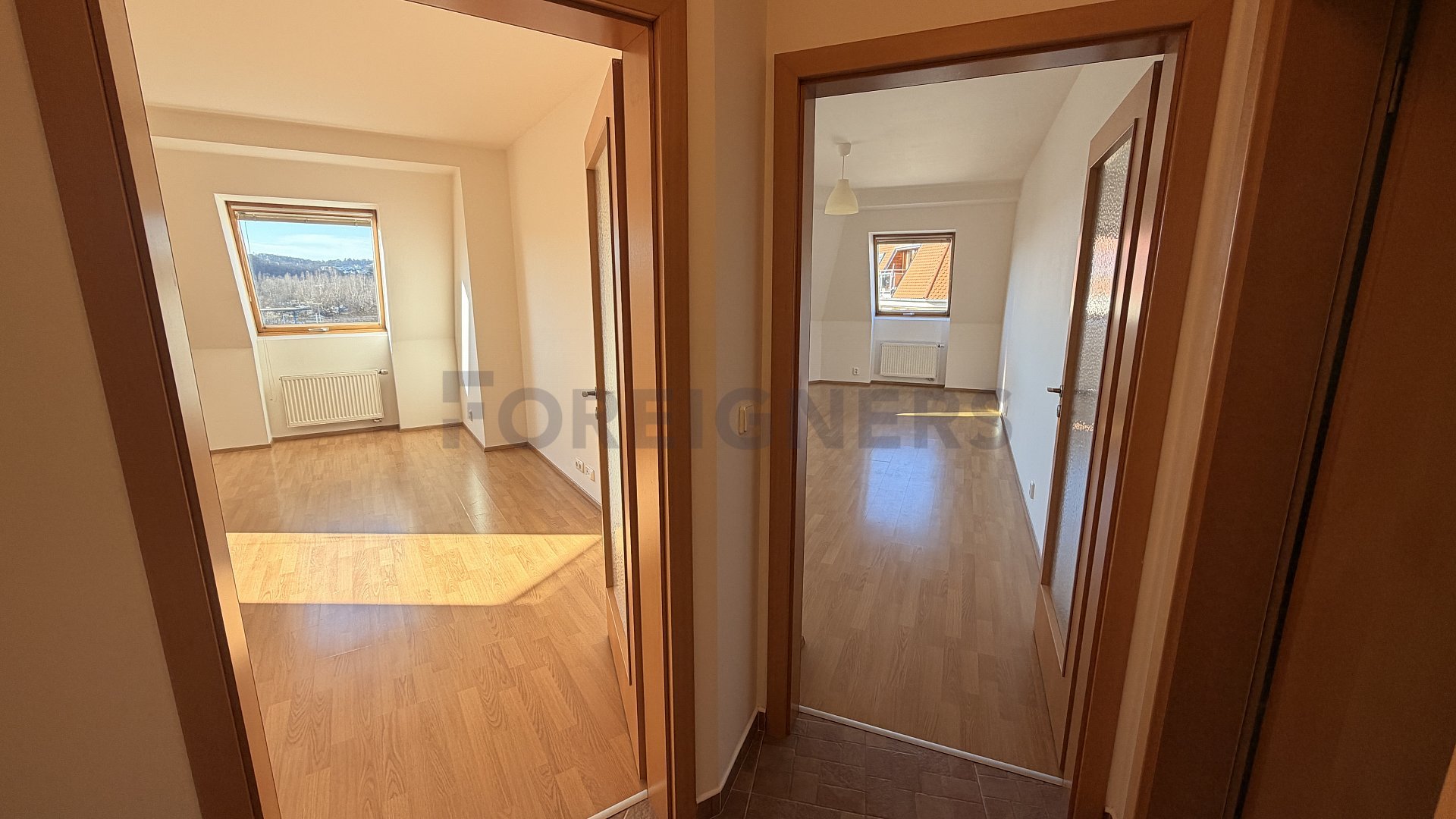 We are offering for rent a bright 2+kk apartment with a terrace and a total area of 61 m², situated on the 4th floor of a modern building with an elevator in Prague 4 – Modřany, Komořanská street.