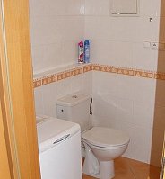 The kitchen is equipped with a fridge with freezer, electric oven, two-burner cooktop, and extractor hood. The bathroom includes a bathtub and a washing machine. Telephone line and internet connection are also available (not included).