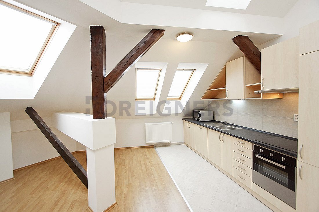 This apartment is located on the last floor of a newly reconstructed building with a lift on Skrétova St. It's located in a calm area and the building is very safe! To the Náměstí Republiky square it's only 10 minutes by walk.