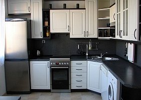 Kitchen unit with built-in appliances (fridge, freezer, oven, cooker, dishwasher, microwave oven)