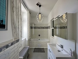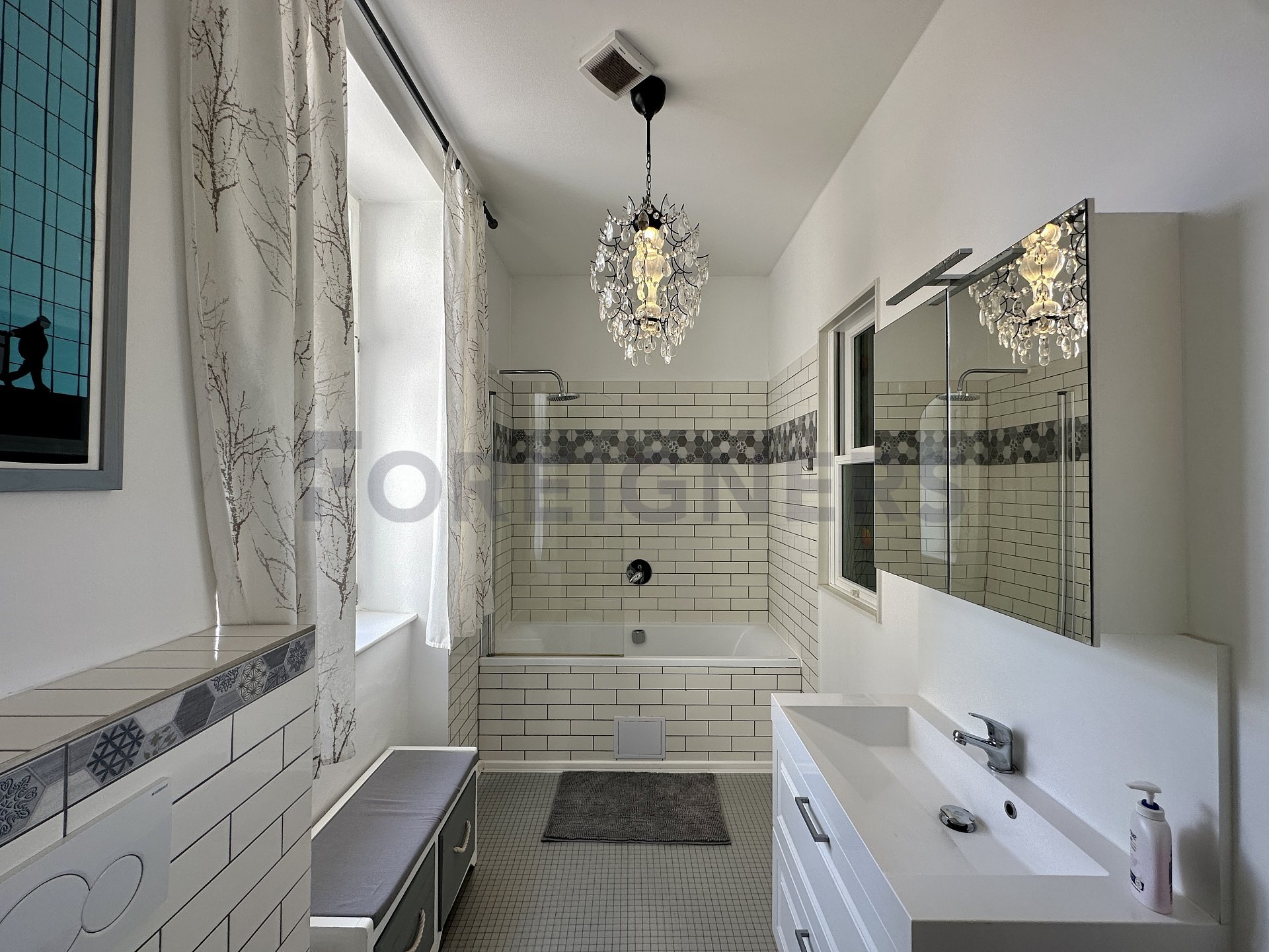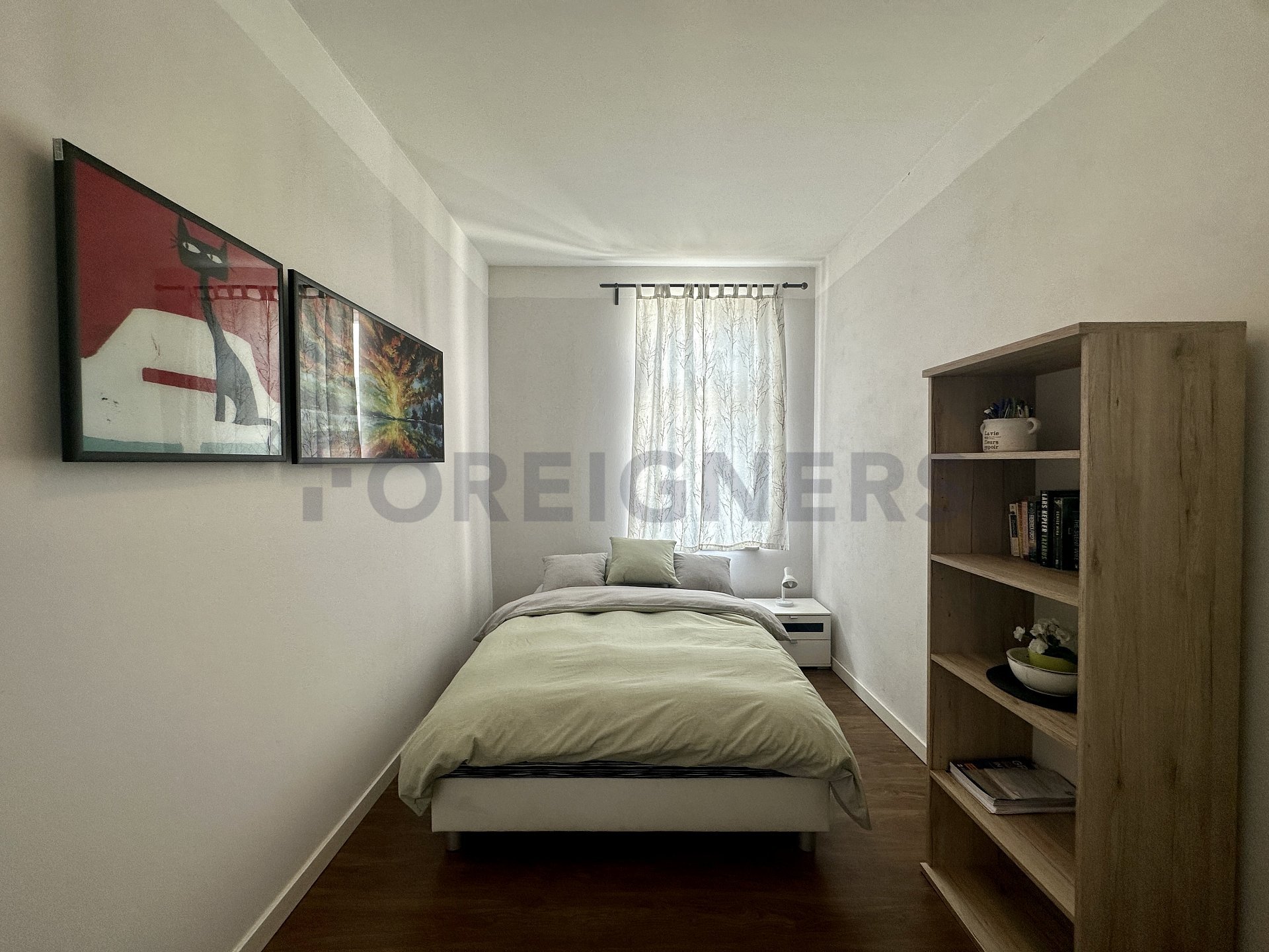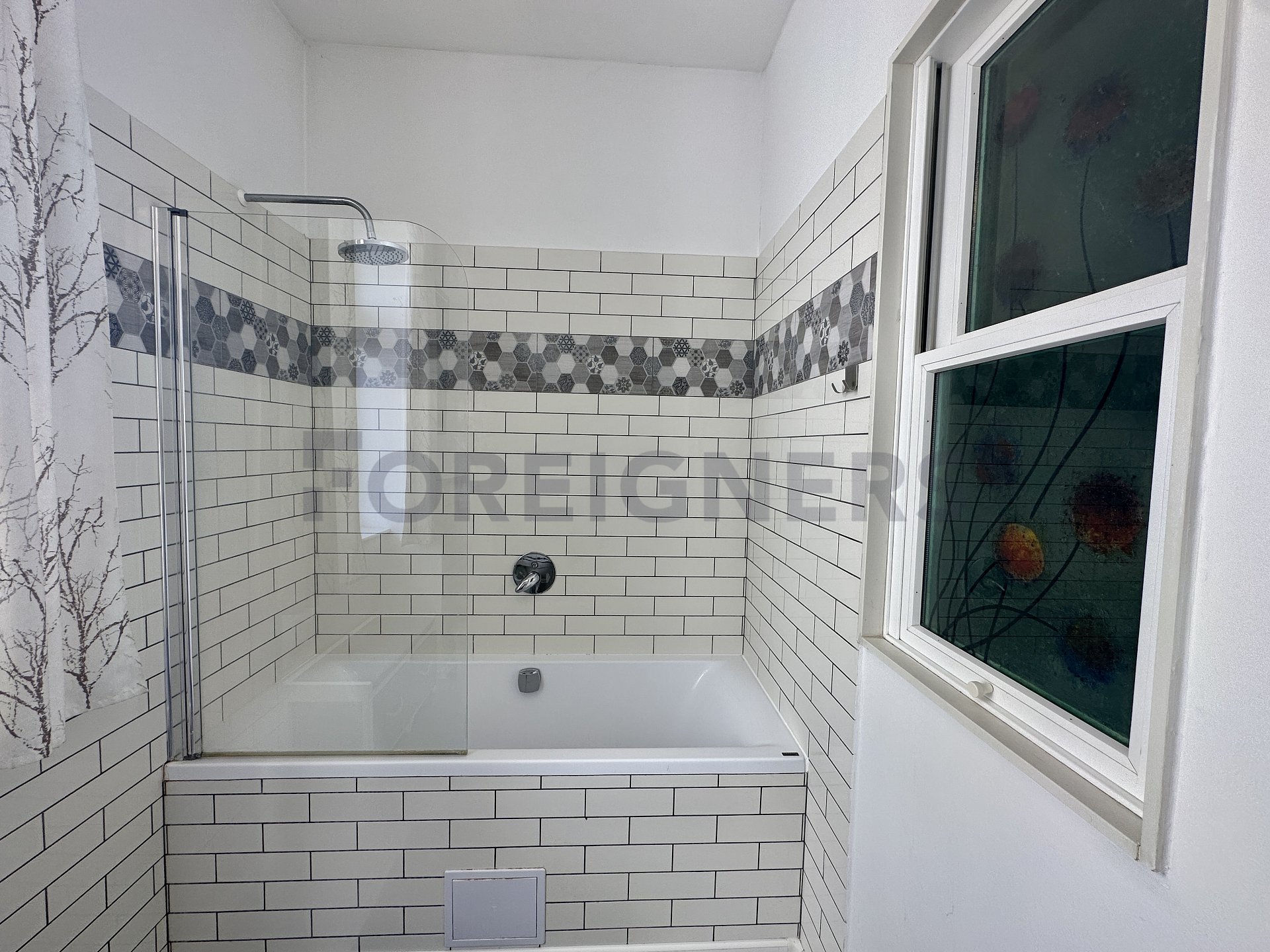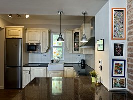 Fully furnished with modern furniture and appliances as you can see in the pictures. Kitchen - dishwasher, microwave, oven, huge fridge with freezer, bar with bar chairs etc.) Double bed, wardrobe, convertible sofa, study destk with chair, bookcase. You can also find there washing machine, clothes dryer, TV and bike as a bonus.
