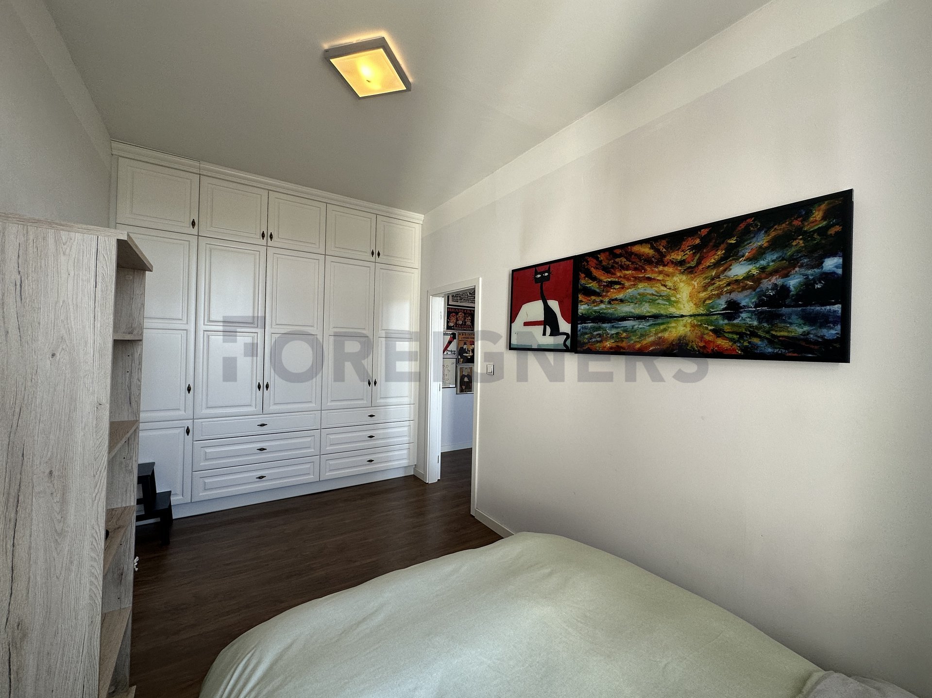 This beautiful, bright and modern apartment of the size of 55m2 consists of entrance hall, living room connected to the kitchen area, separate bedroom with bed and spacious wardrobe and beautiful bathroom with bathtub.